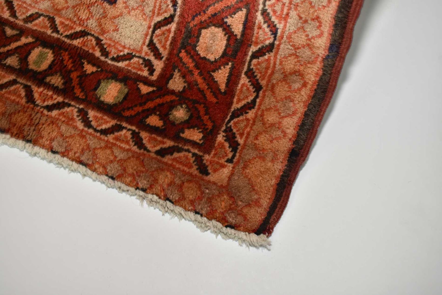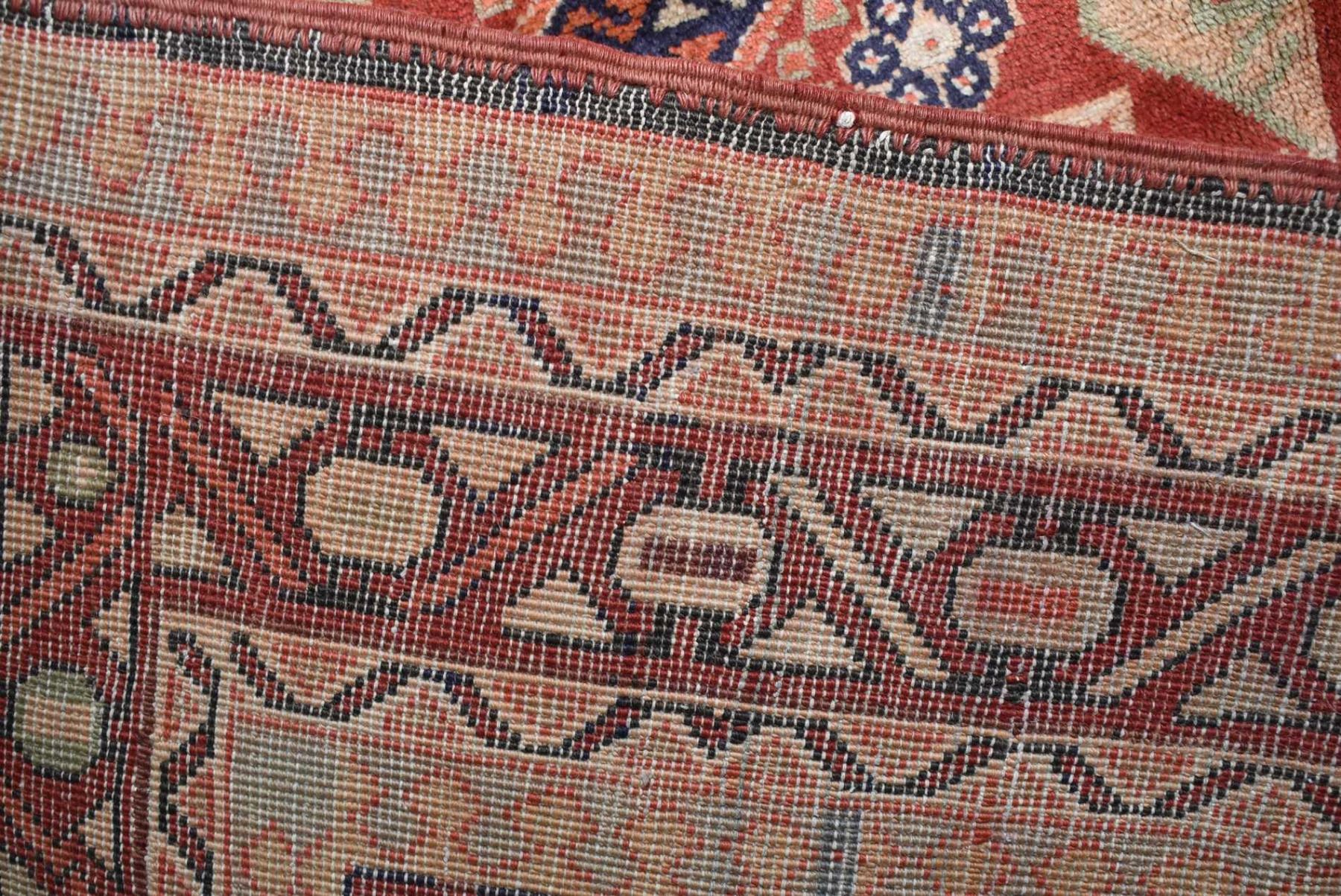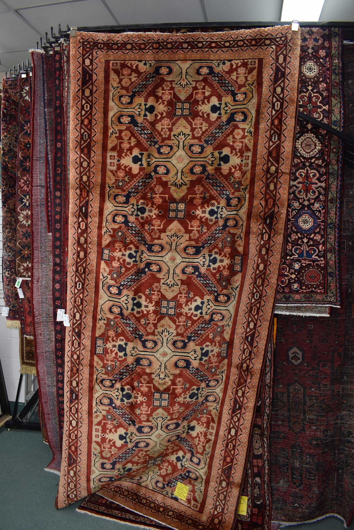 100% handmade Iranian Ardebil area carpet with multiple medallions and highlights in copper, blues, sage etc. 50" X 122"