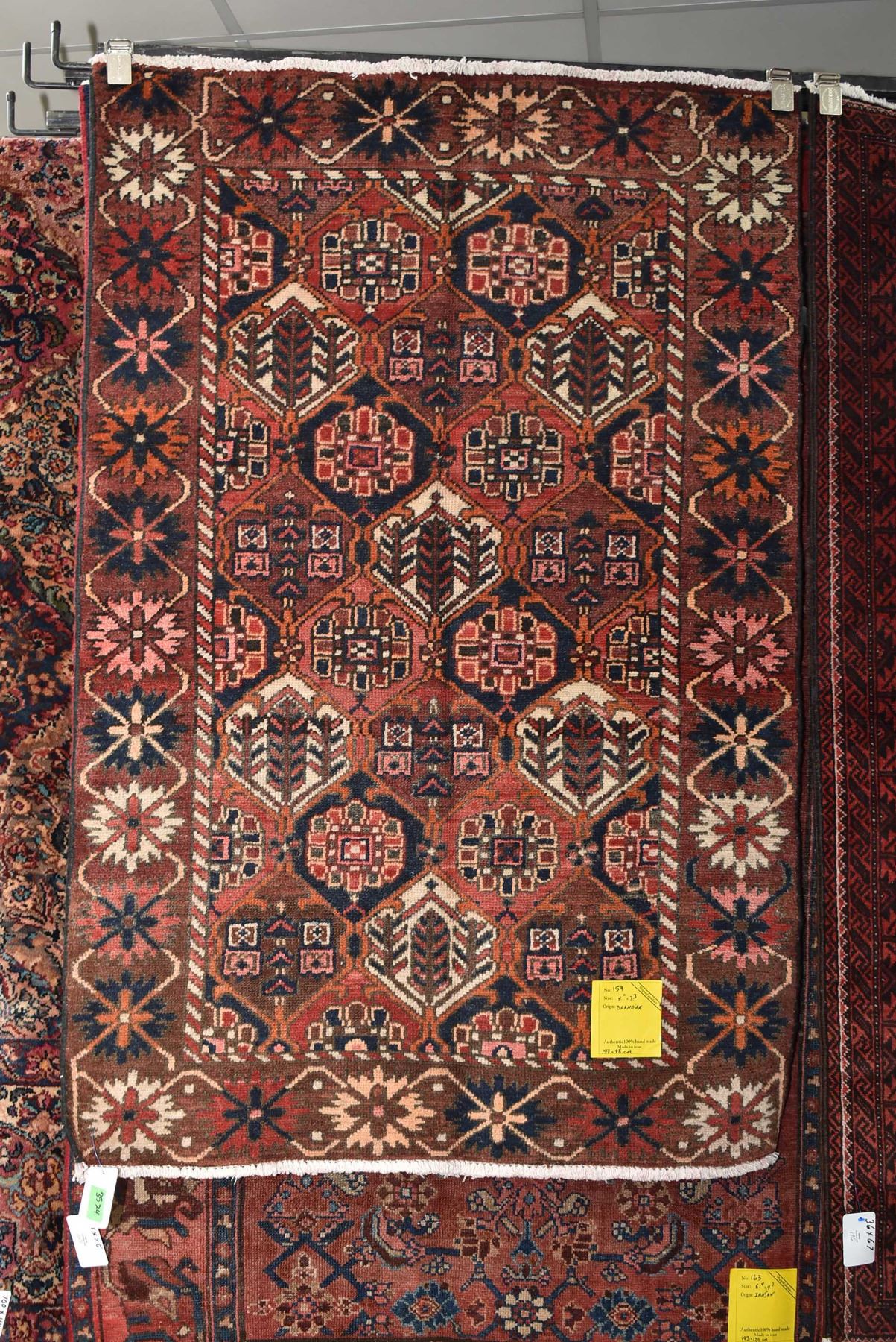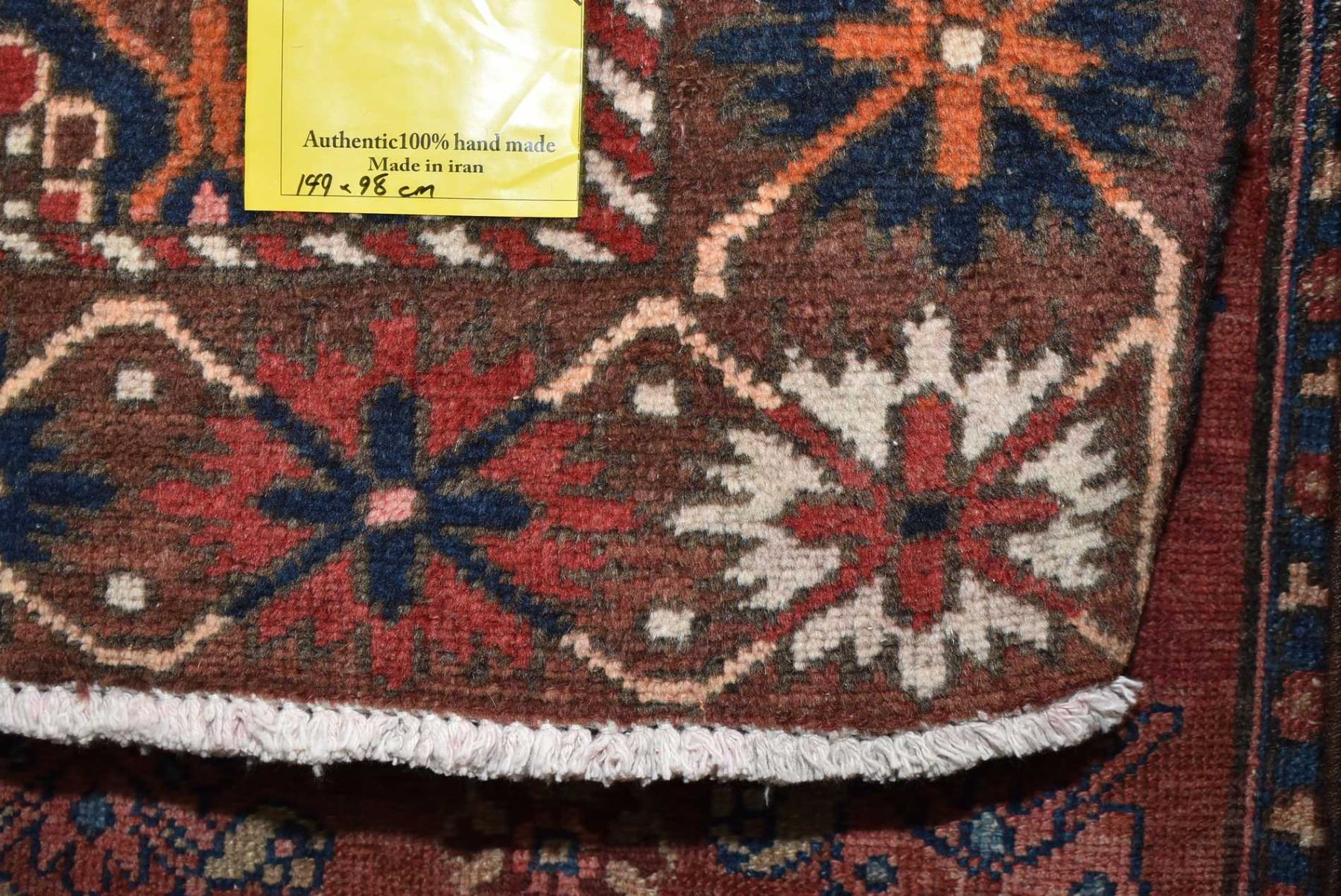 100% handmade Iranian Bakhtari area carpet with geometric design and highlight of copper, orange, blue, red etc. 39" X 58"