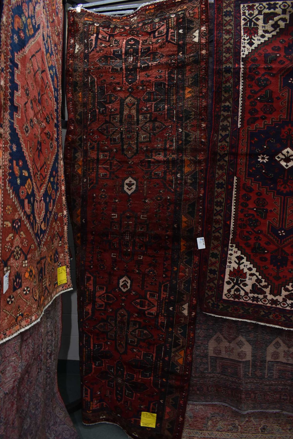 100% handmade Iranian Hamdam carpet runner in tones of red, blues, orange, pink etc. 39" X 116"