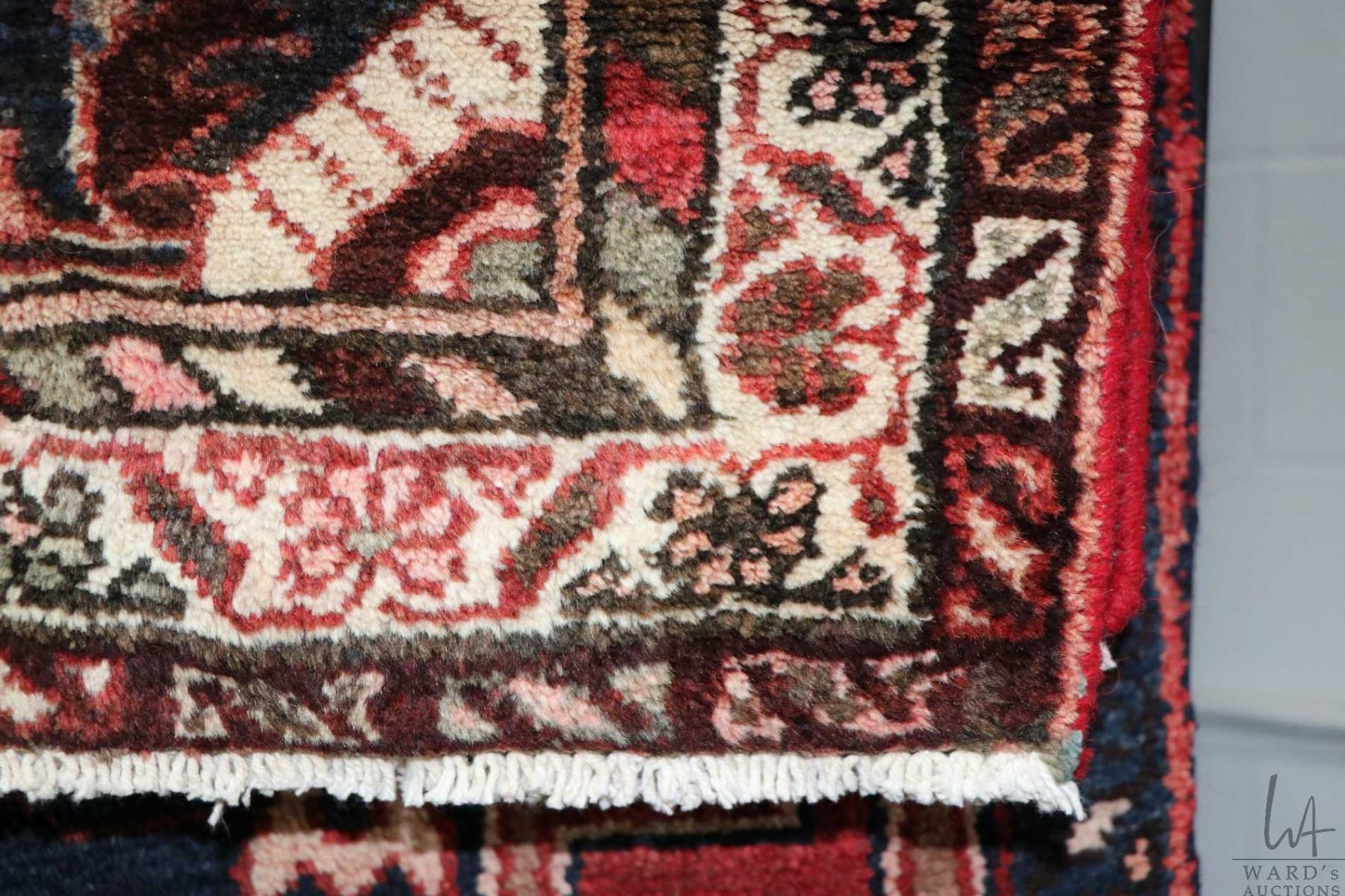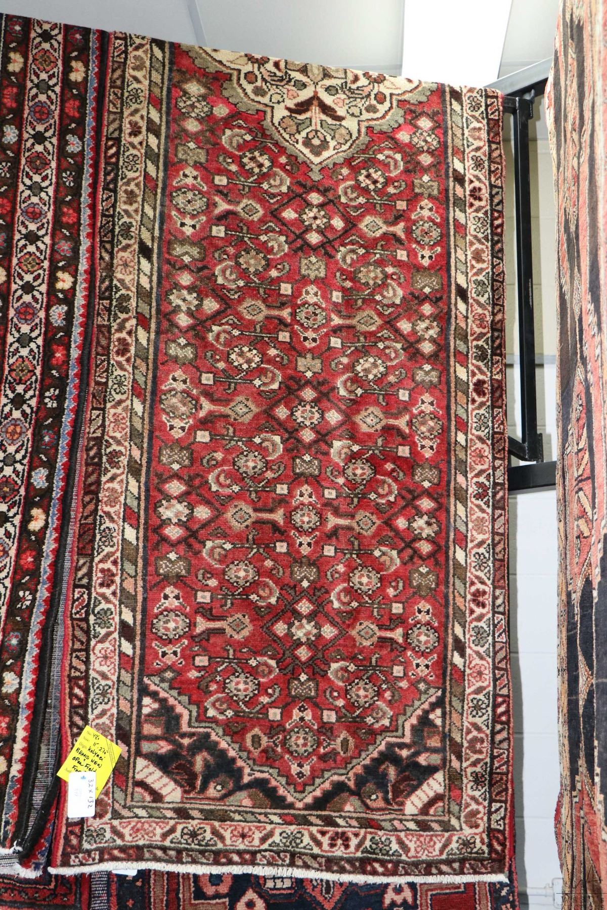 100% handmade Iranian Kolyaei carpet runner with center medallion, red background and highlights of blues, cream, taupe etc. 32" X 132"
