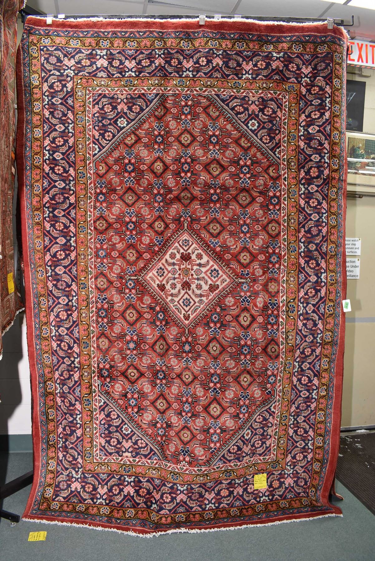 100% handmade Iranian Mahal area carpet with center medallion and tones of red, cream, blues, purple etc. 78" X 120"