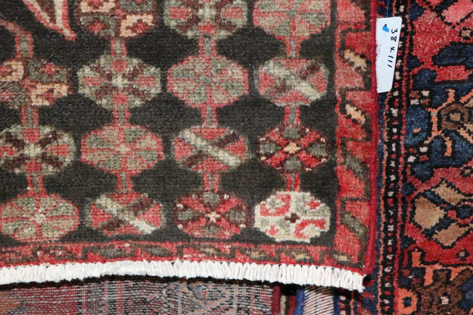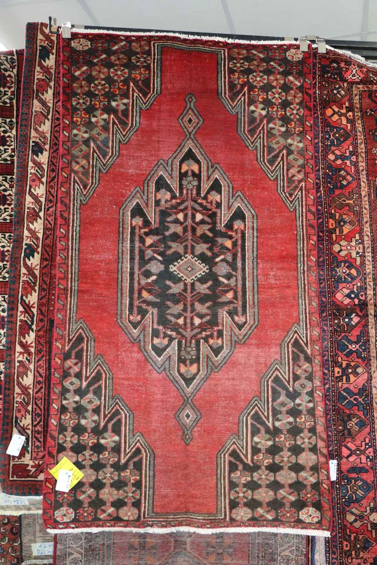 100% handmade Iranian Mazlegan area carpet with center medallion, red background and highlights of taupe, brown, gray etc. 40" X 73"
