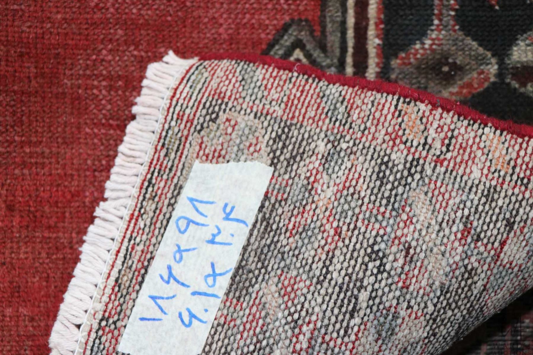 100% handmade Iranian Mazlegan area carpet with center medallion, red background and highlights of t