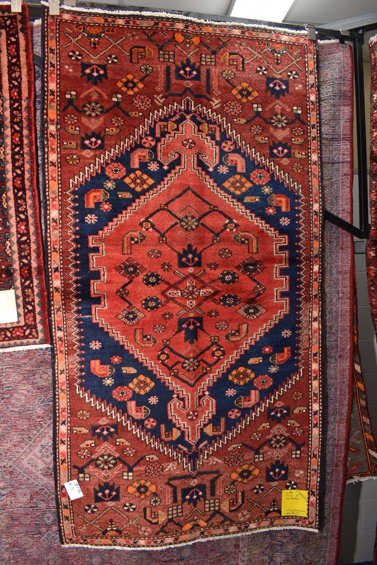 100% handmade Iranian Zanjan area carpet in tones of red, blue, orange etc. 38" X 72"