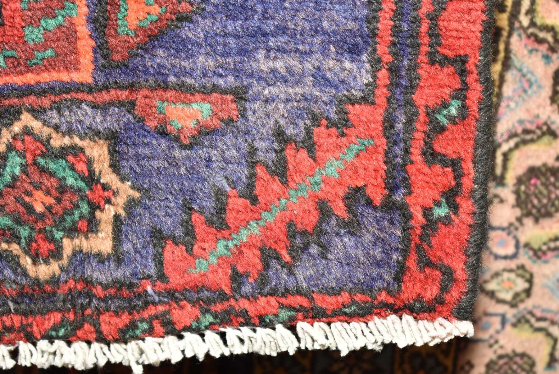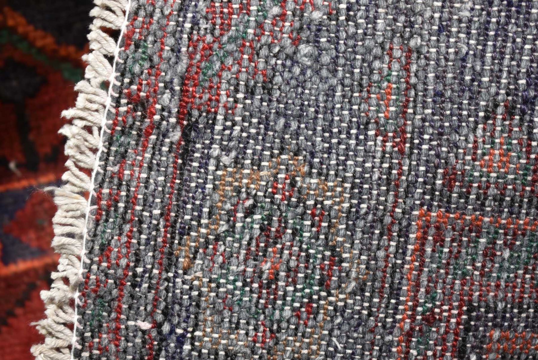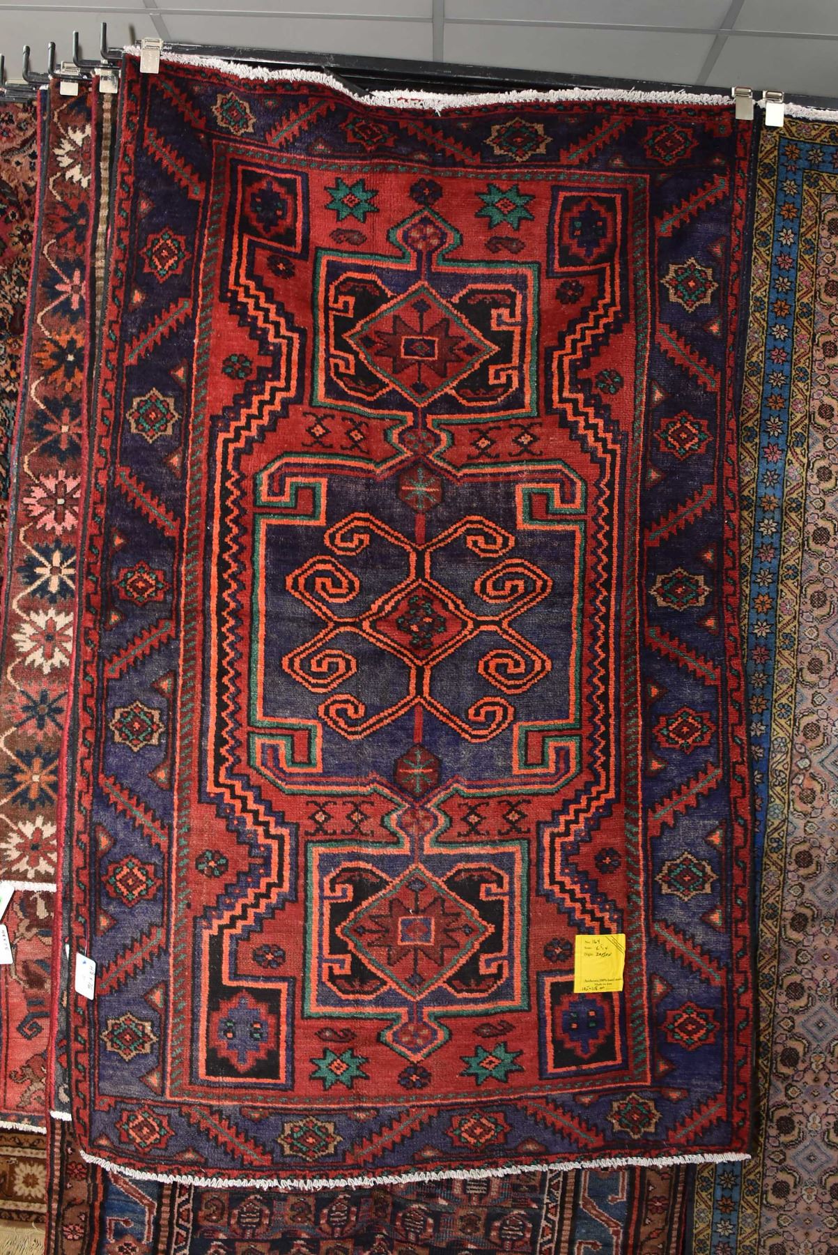 100% handmade Iranian Zanjan area carpet with triple medallion, red background in shades of blues, orange, green etc. 48" X 76"