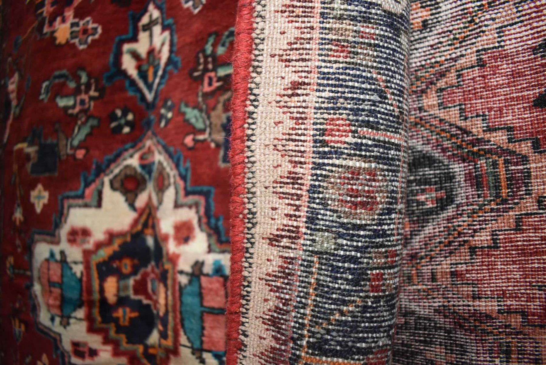 100% handmade Iranian Zanjan carpet runner with center medallion, red background, stylized floral pa