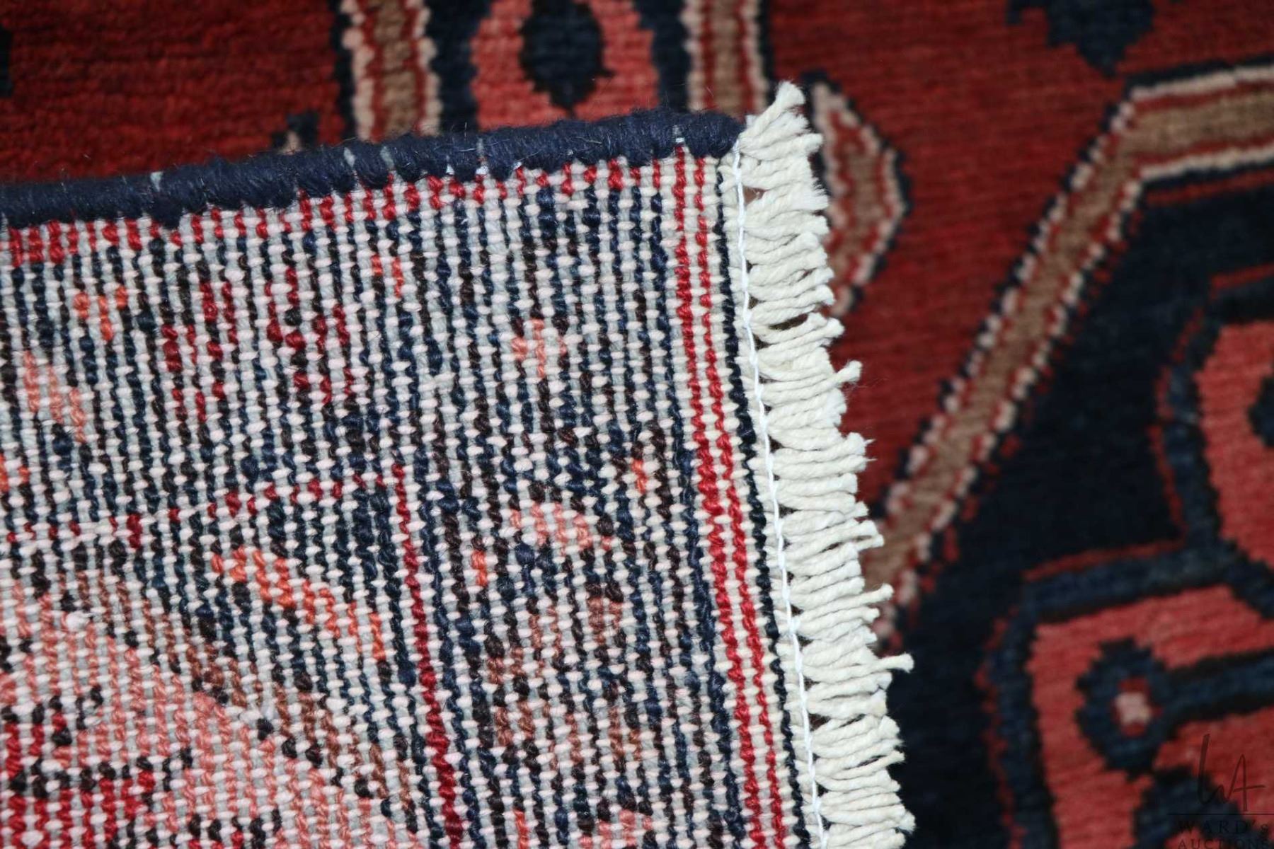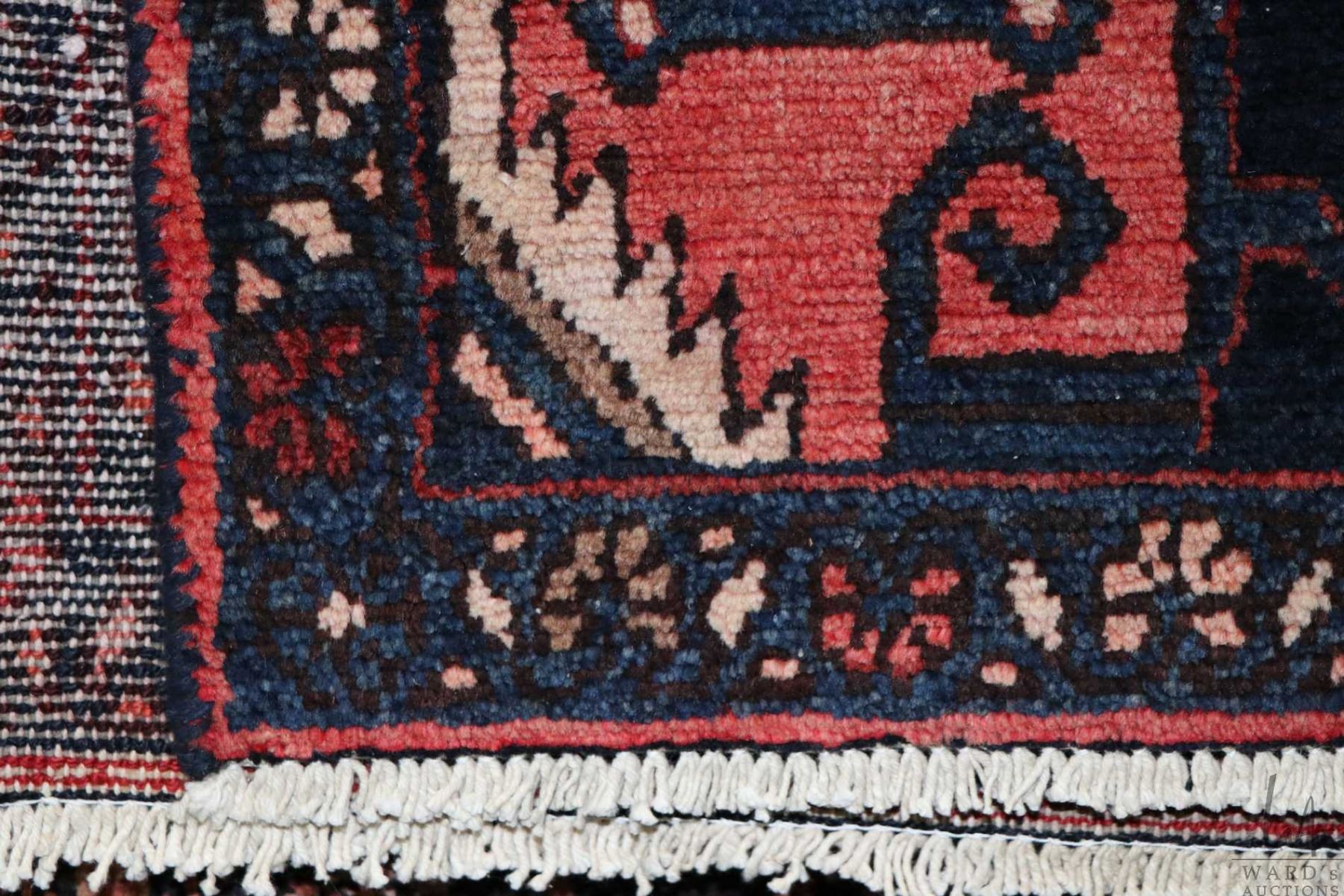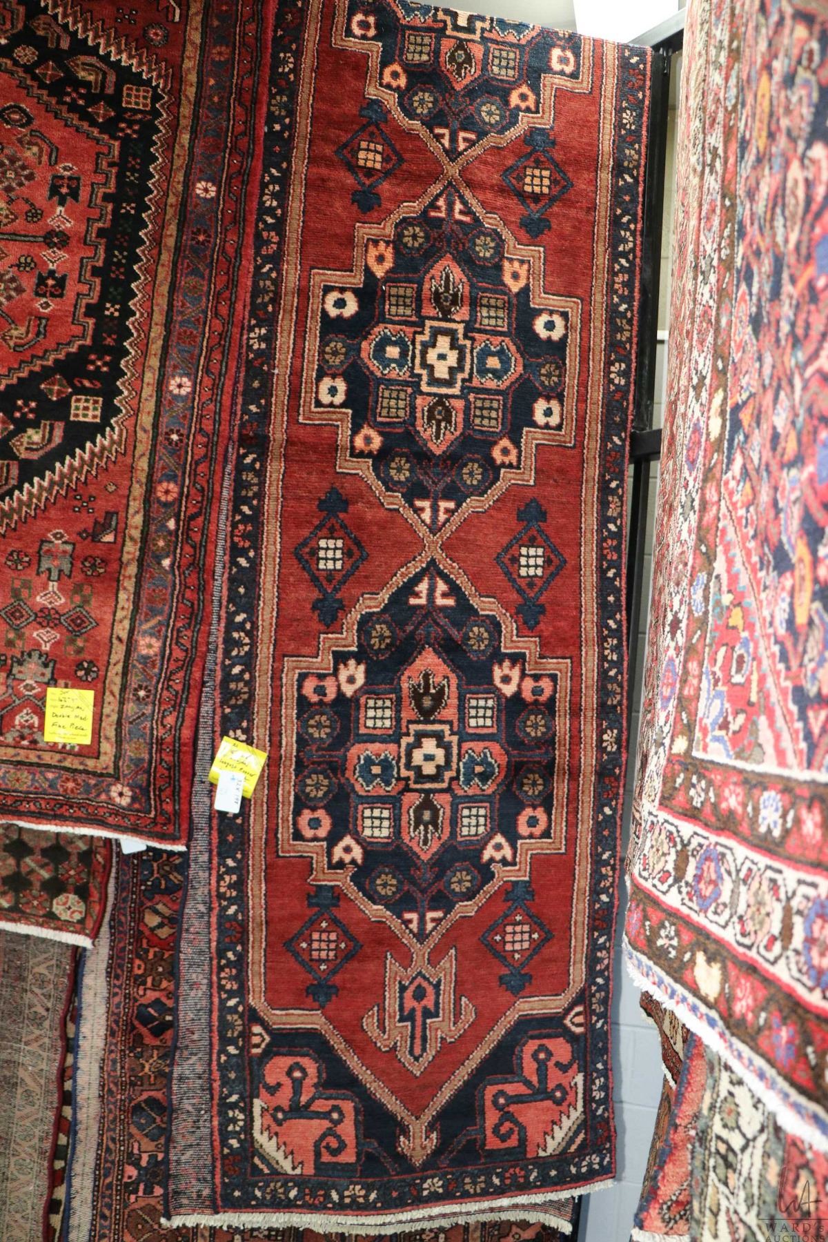 100% handmade Iranian Zanjan carpet runner with multiple medallions, red background and highlights of blues, taupe, cream etc. 32" X 198"