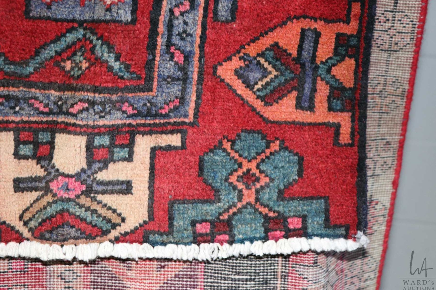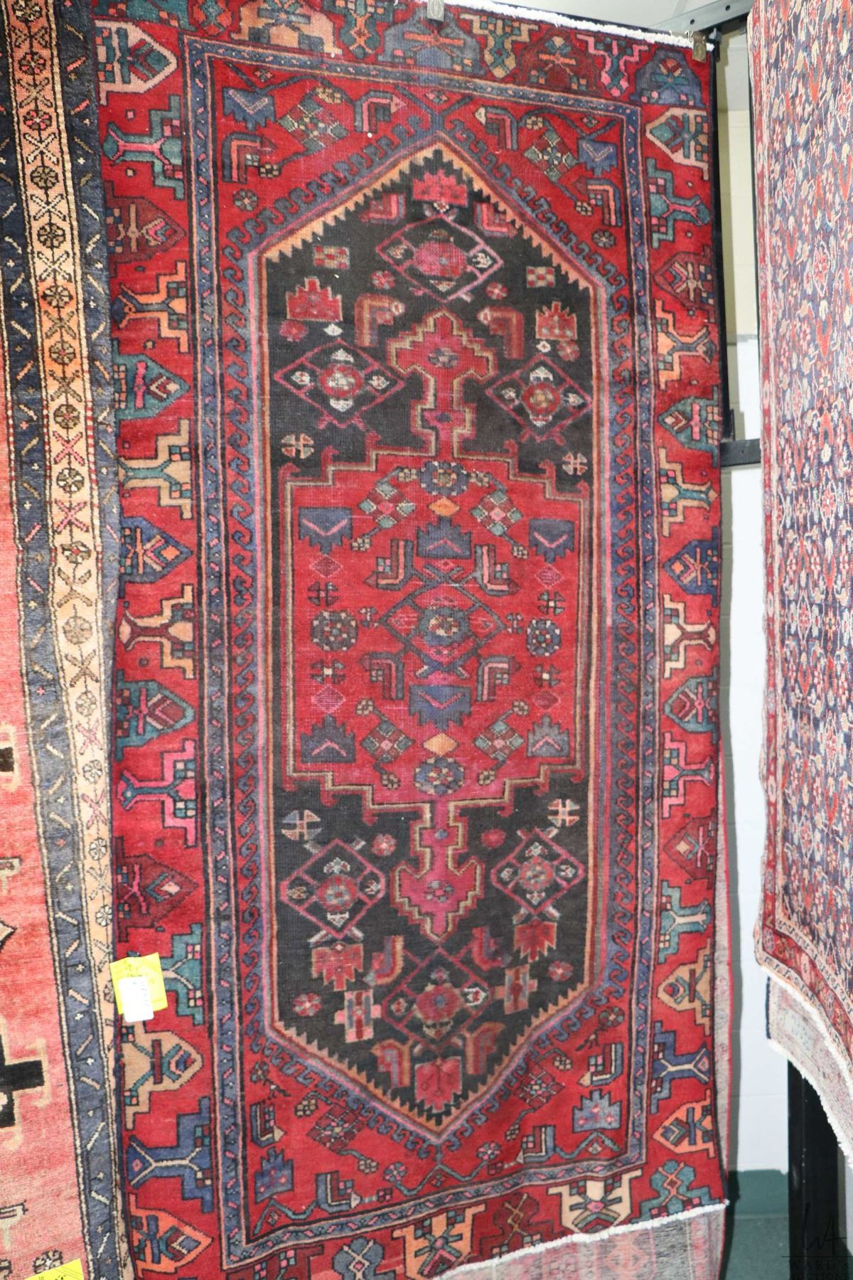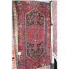 100% handmade Iranian Zanjan wool carpet with center medallion and red background plus highlights of brown, blue, pink etc. 48" X 92"
