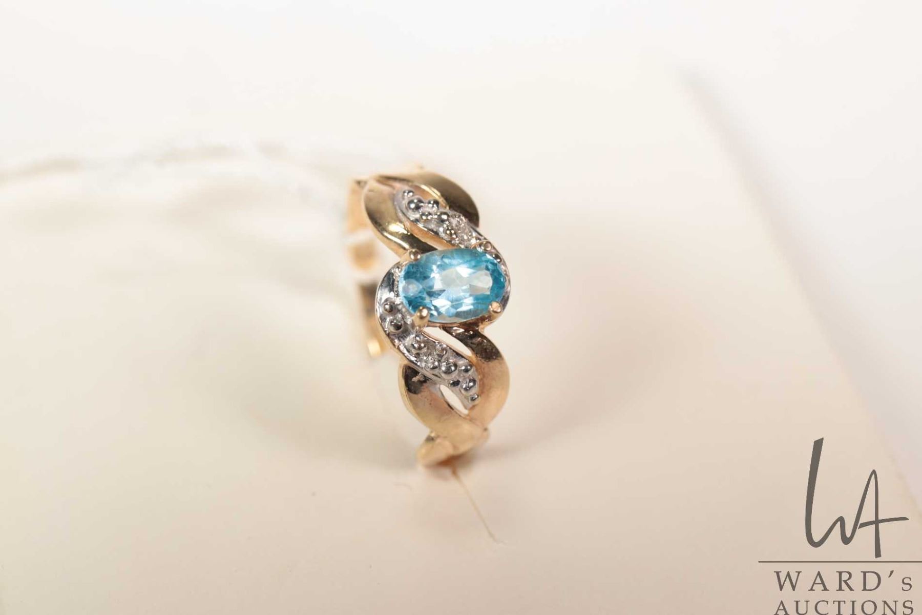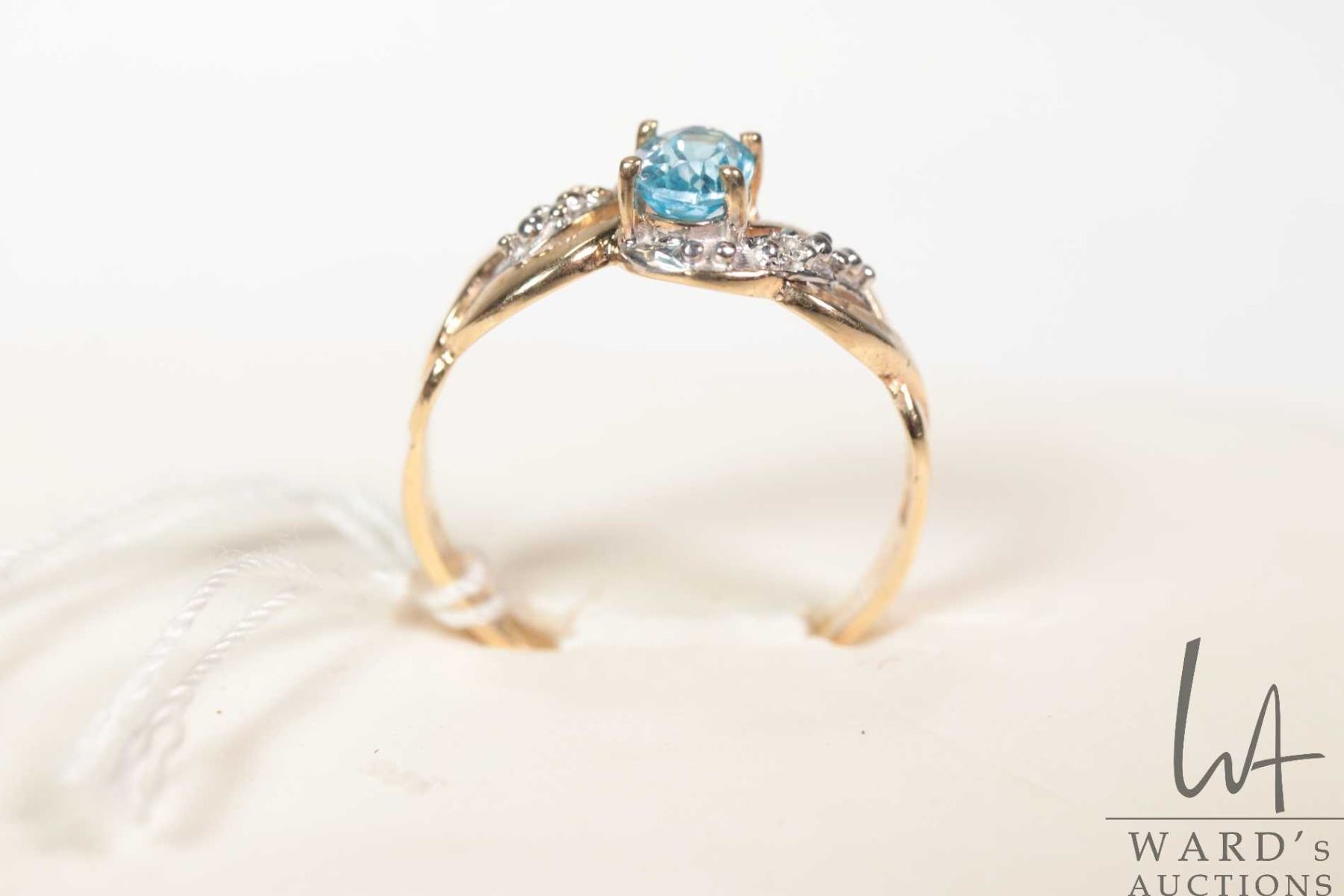 10kt gold ring set with blue oval citrine gemstone, size 6.5