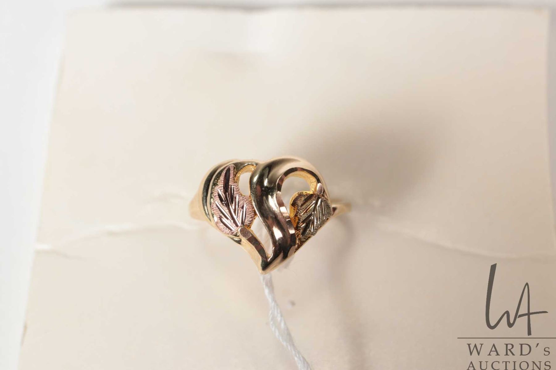 10kt yellow and pink ring heart shaped ring, size 6.75