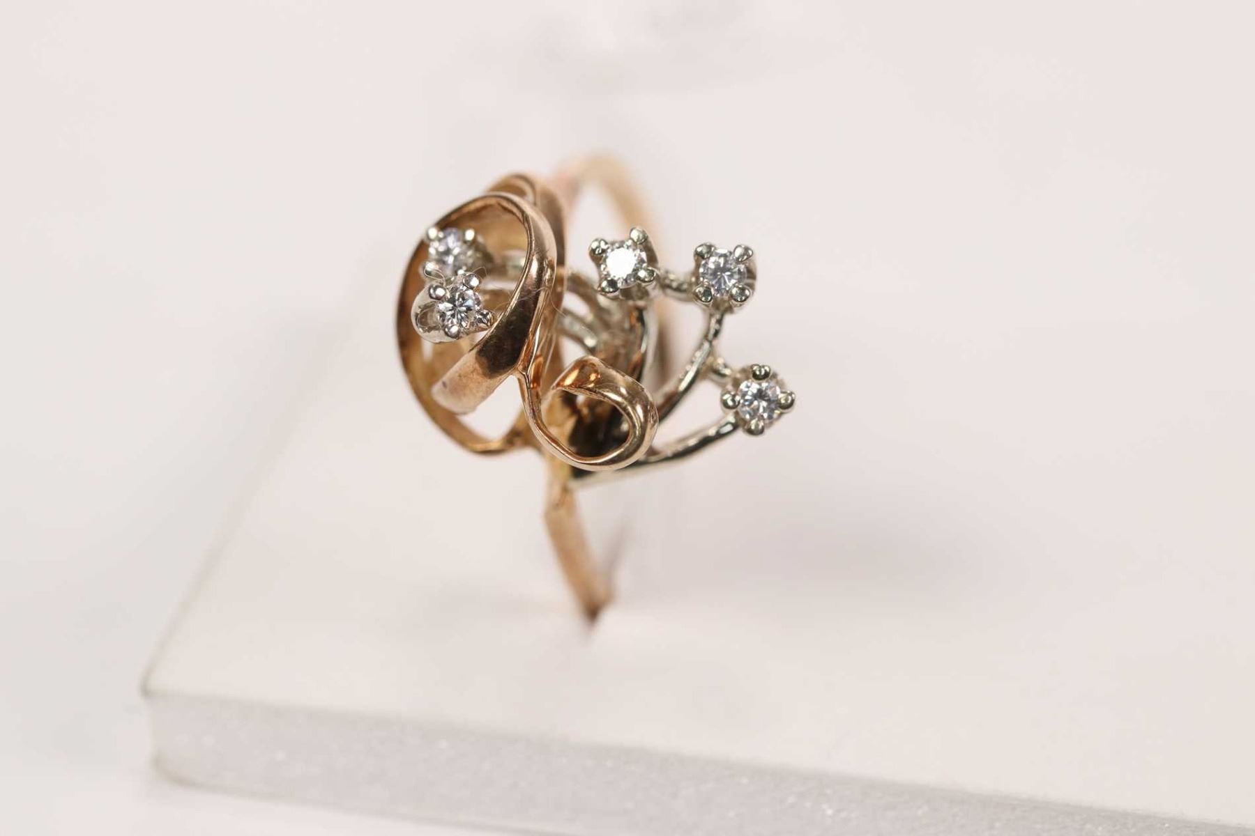 10kt yellow and white gold ladies ring set with five brilliant white accent diamonds