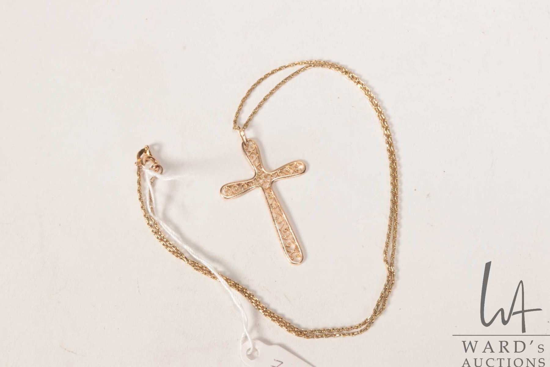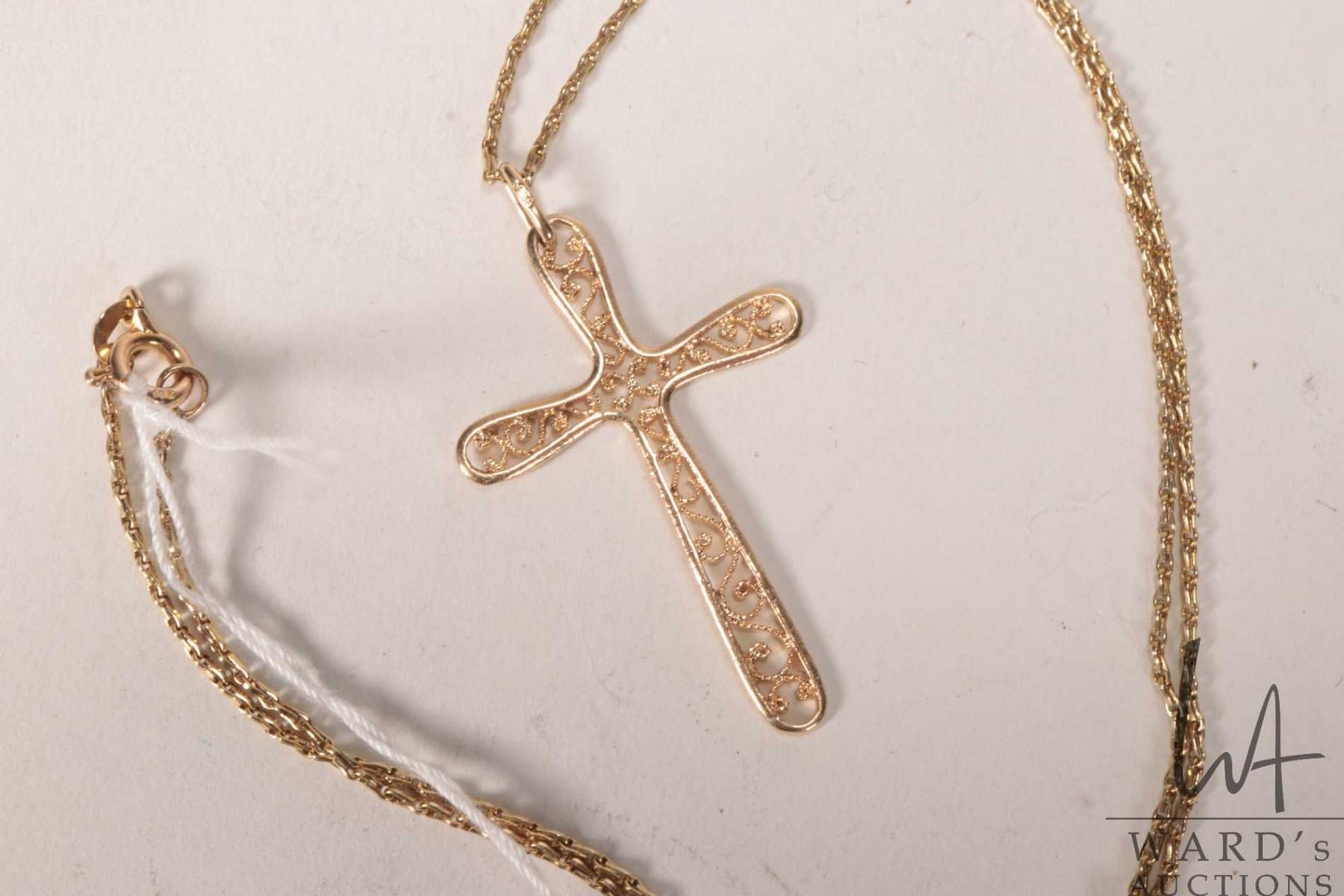 10kt yellow gold 16" neck chain with a 10kt yellow gold filigree cross pendant