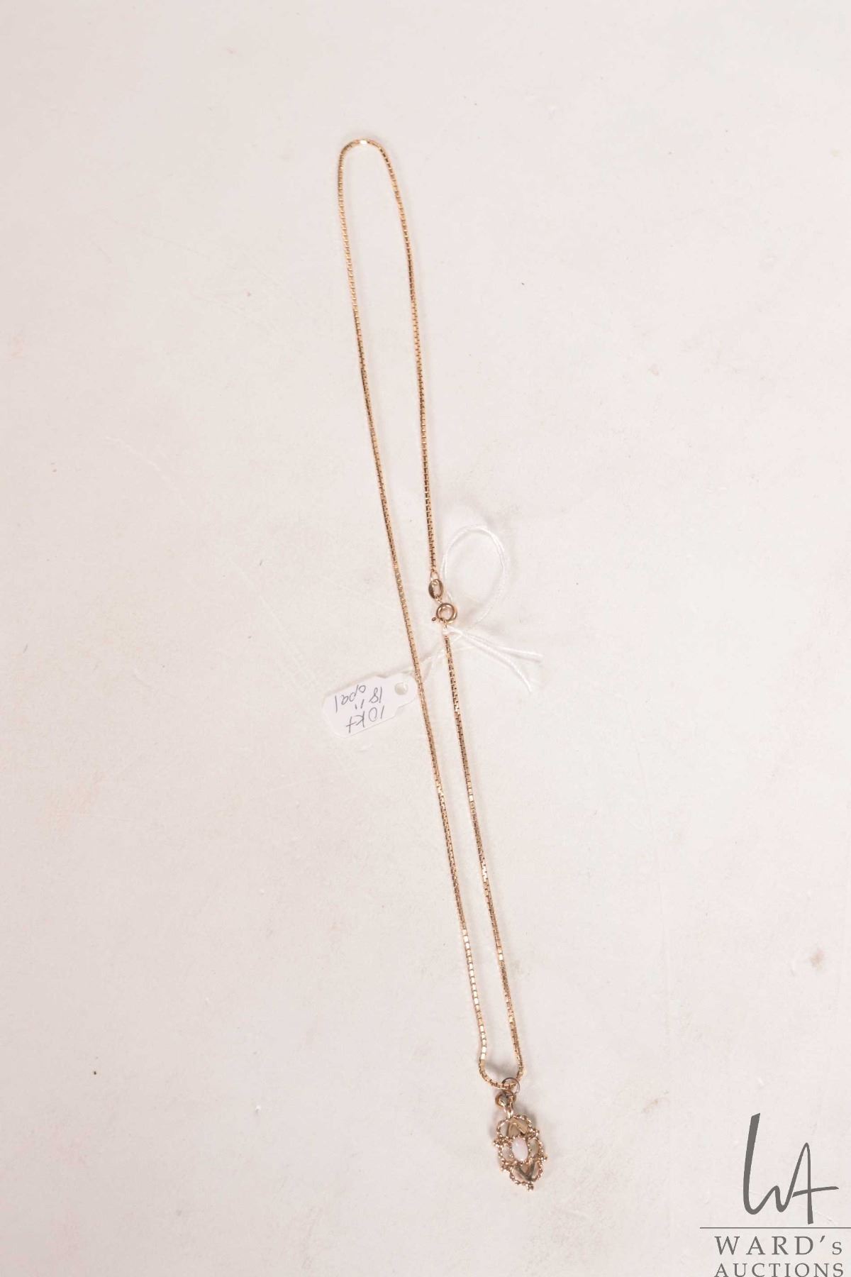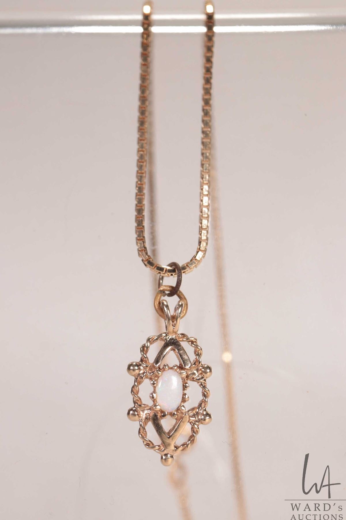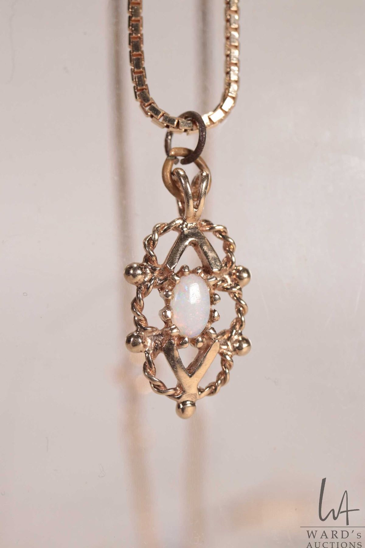 10kt yellow gold 18" box chain with 10kt yellow gold pendant set with opal gemstone