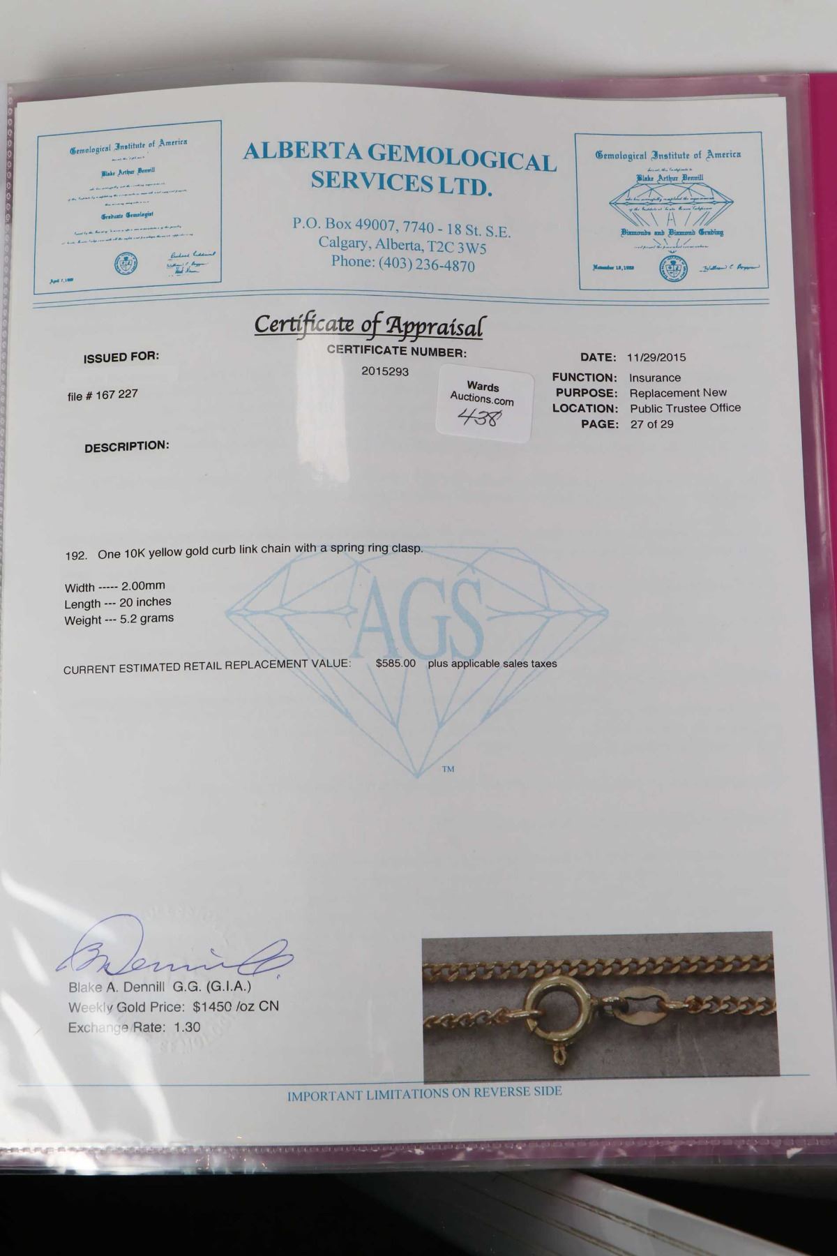 10kt yellow gold 20" curb chain. Retail replacement value $ 585.00