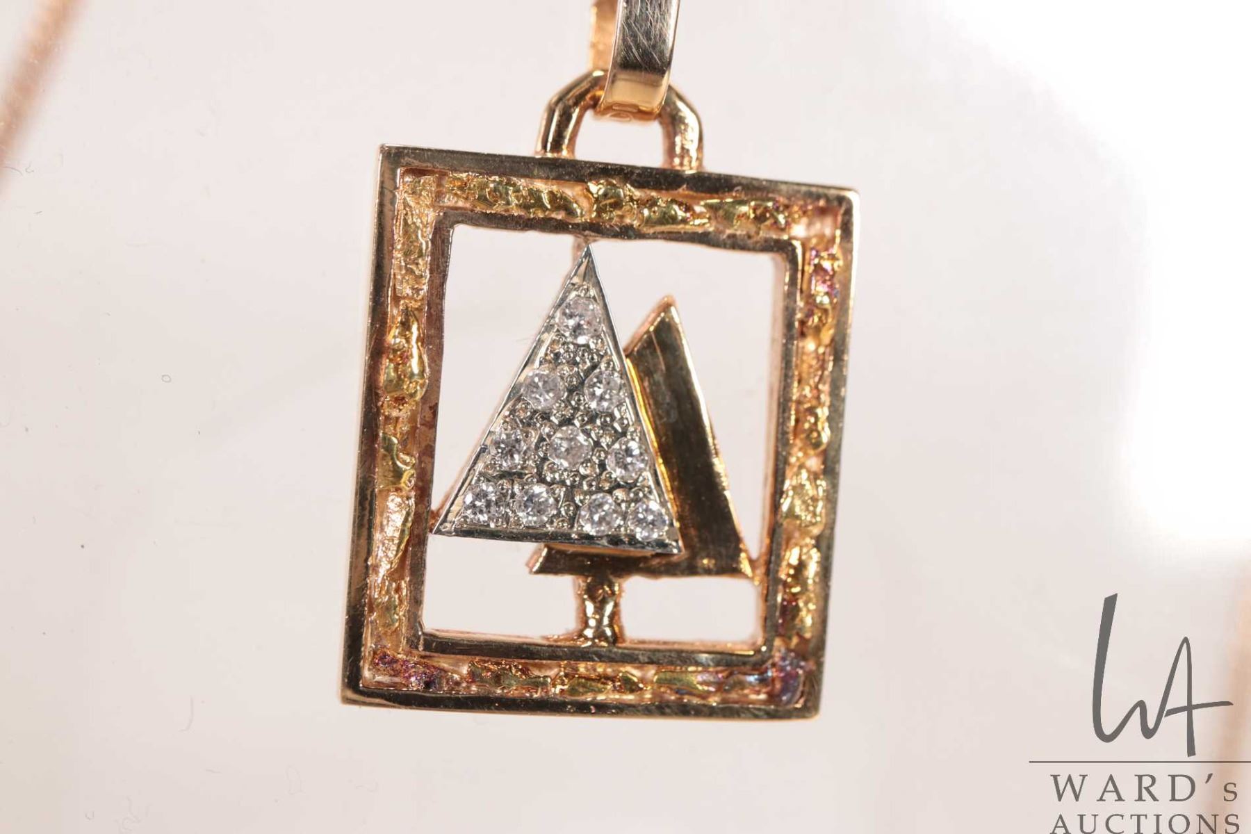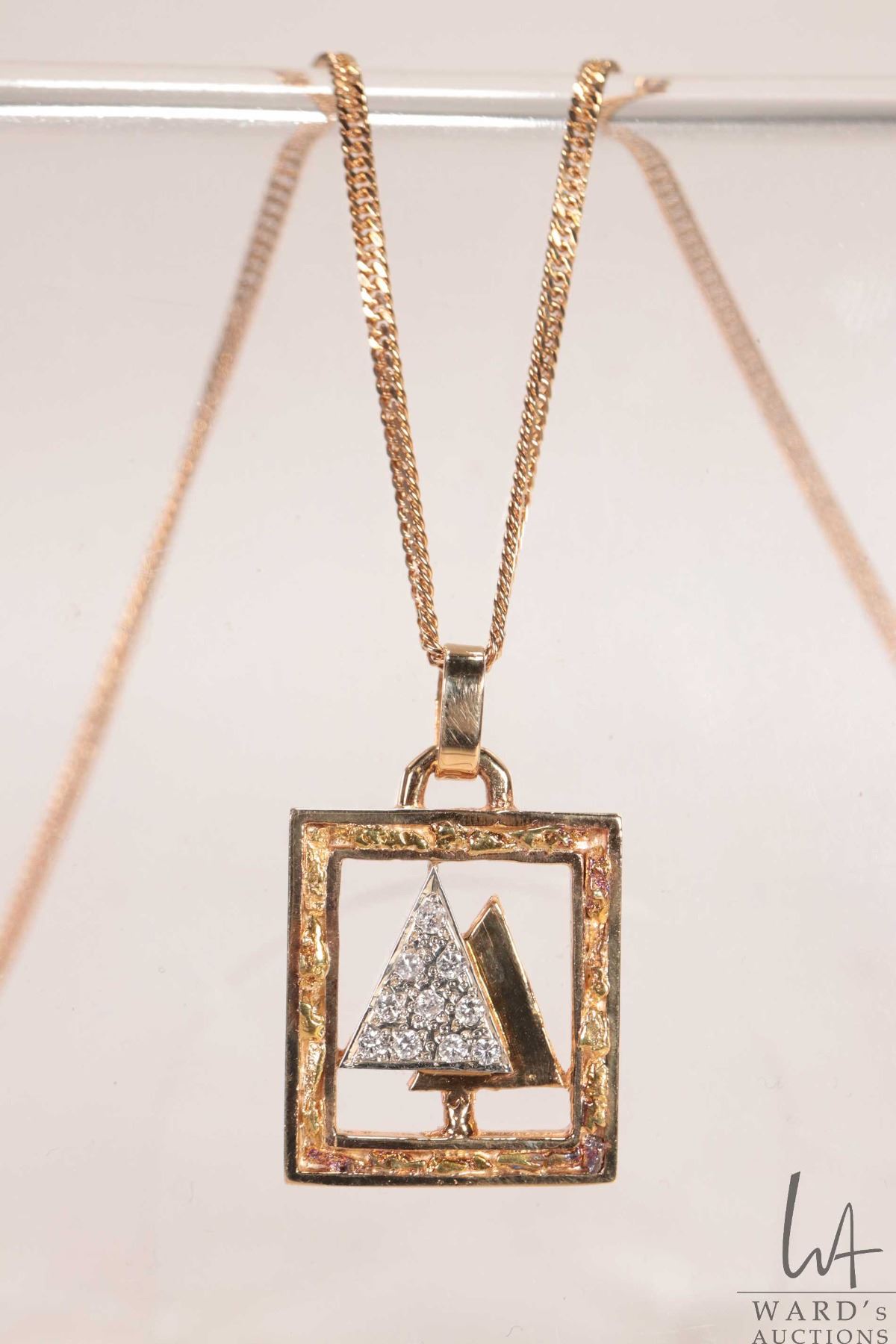 10kt yellow gold 20" neck chain with 10kt yellow gold tree pendant set with ten small diamonds