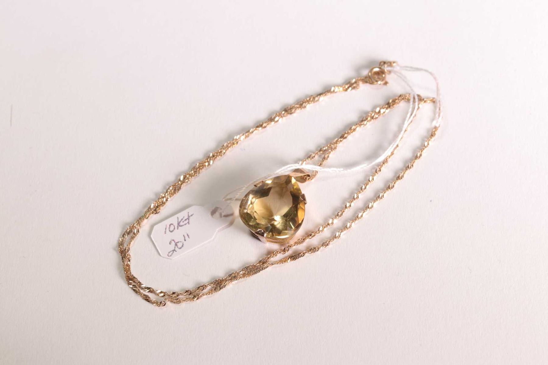 10kt yellow gold 20" neck chain with a pear shaped citrine gemstone pendant