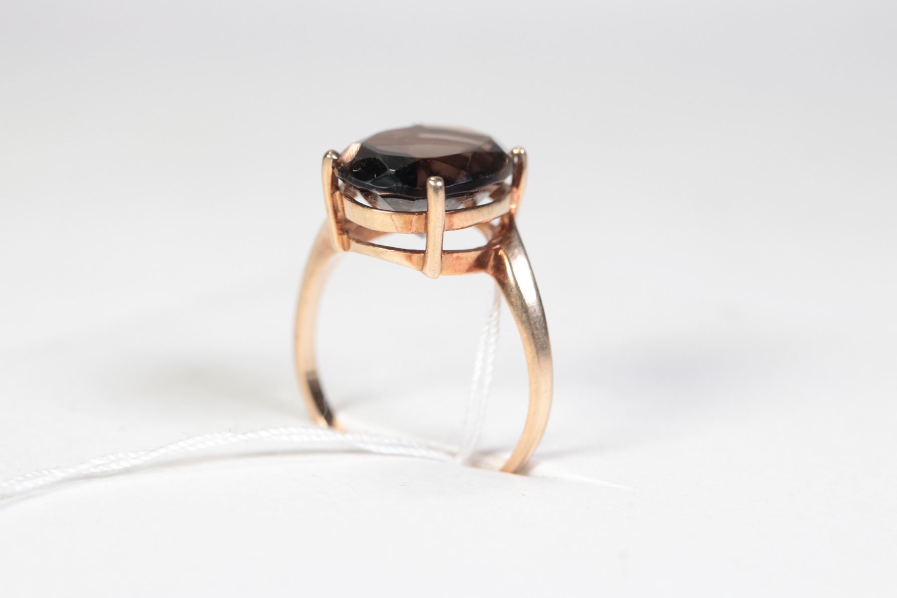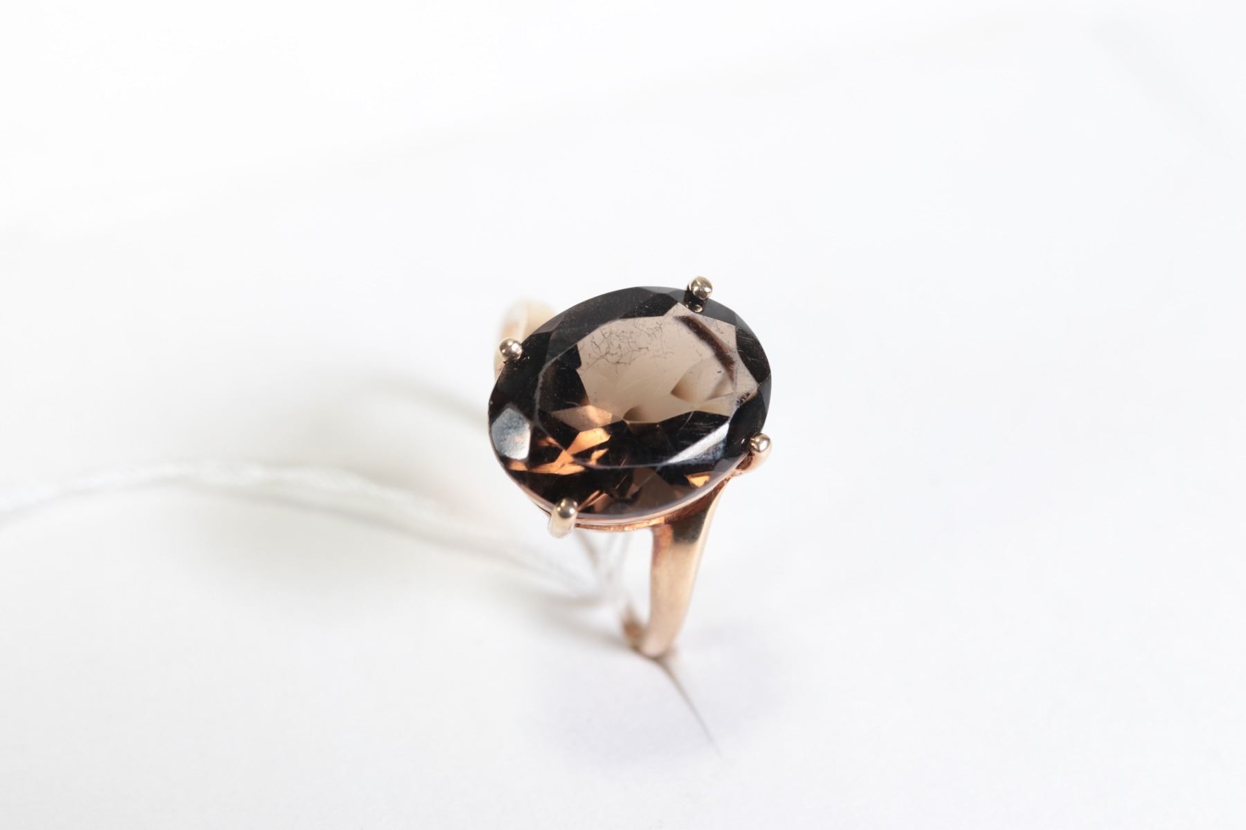 10kt yellow gold and oval cut smokey quartz gemstone ring, size 9.75