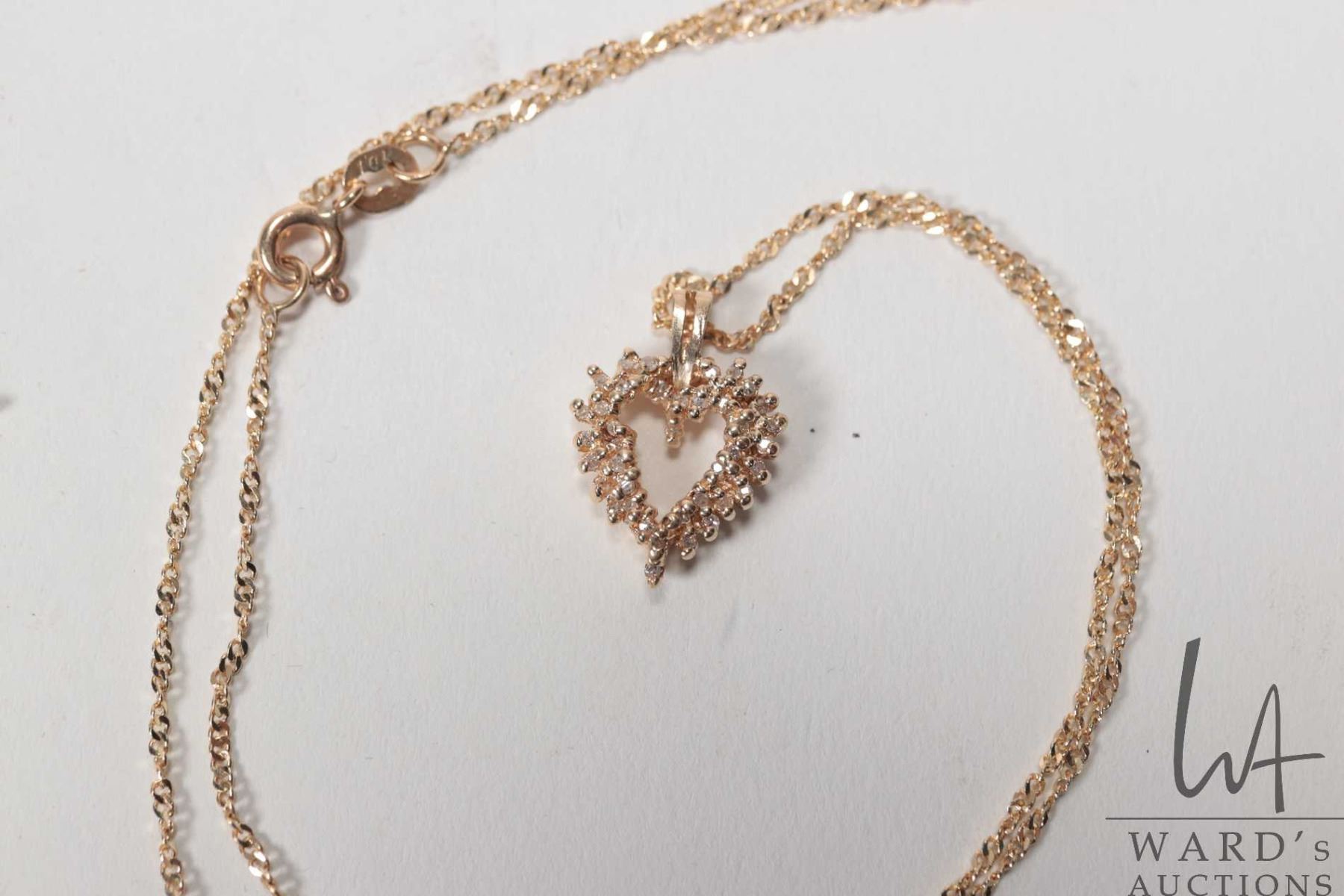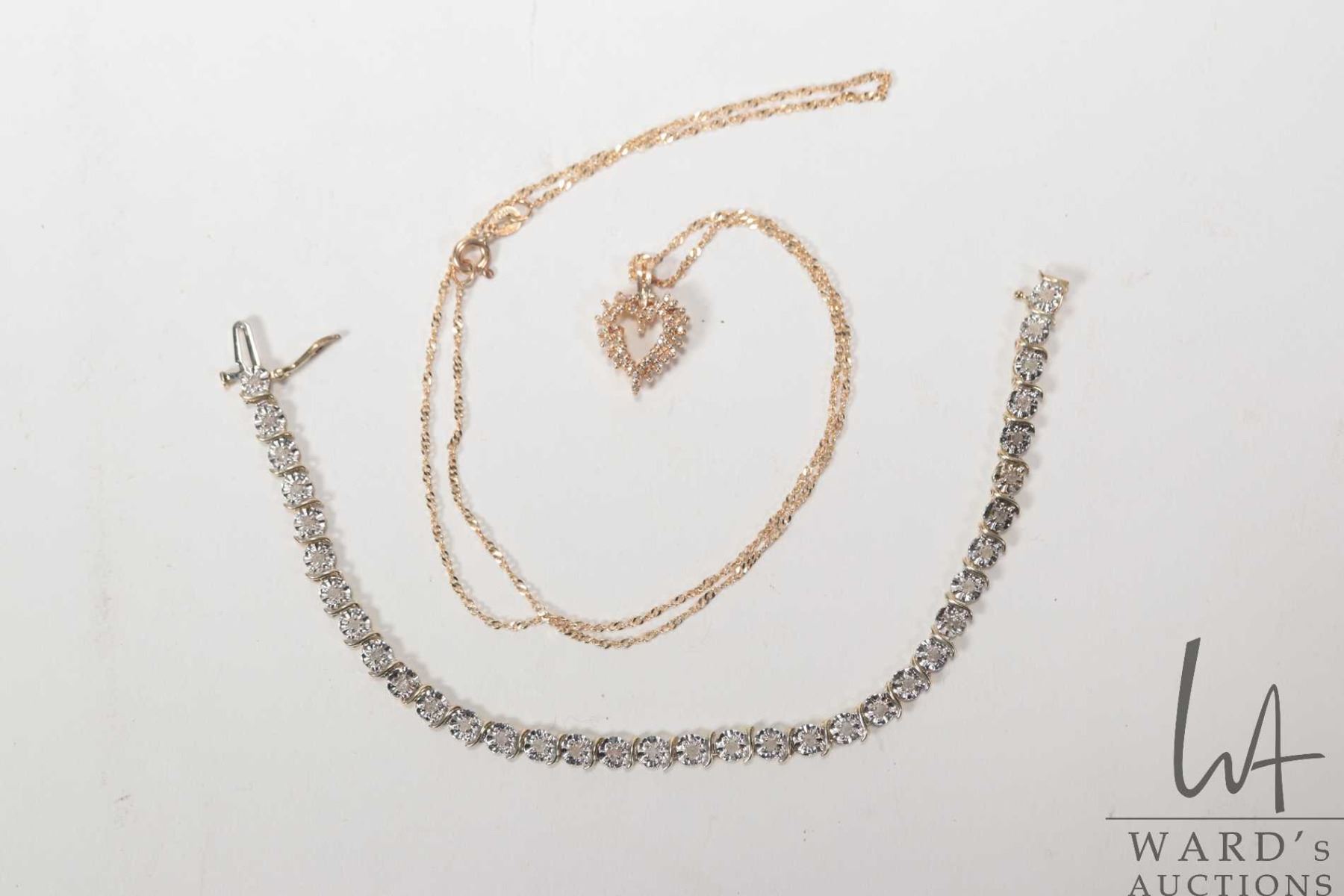 10kt yellow gold heart pendant set with diamonds on a 18" twisted gold rope chain plus a 10kt yellow and white gold bracelet set with small diamonds