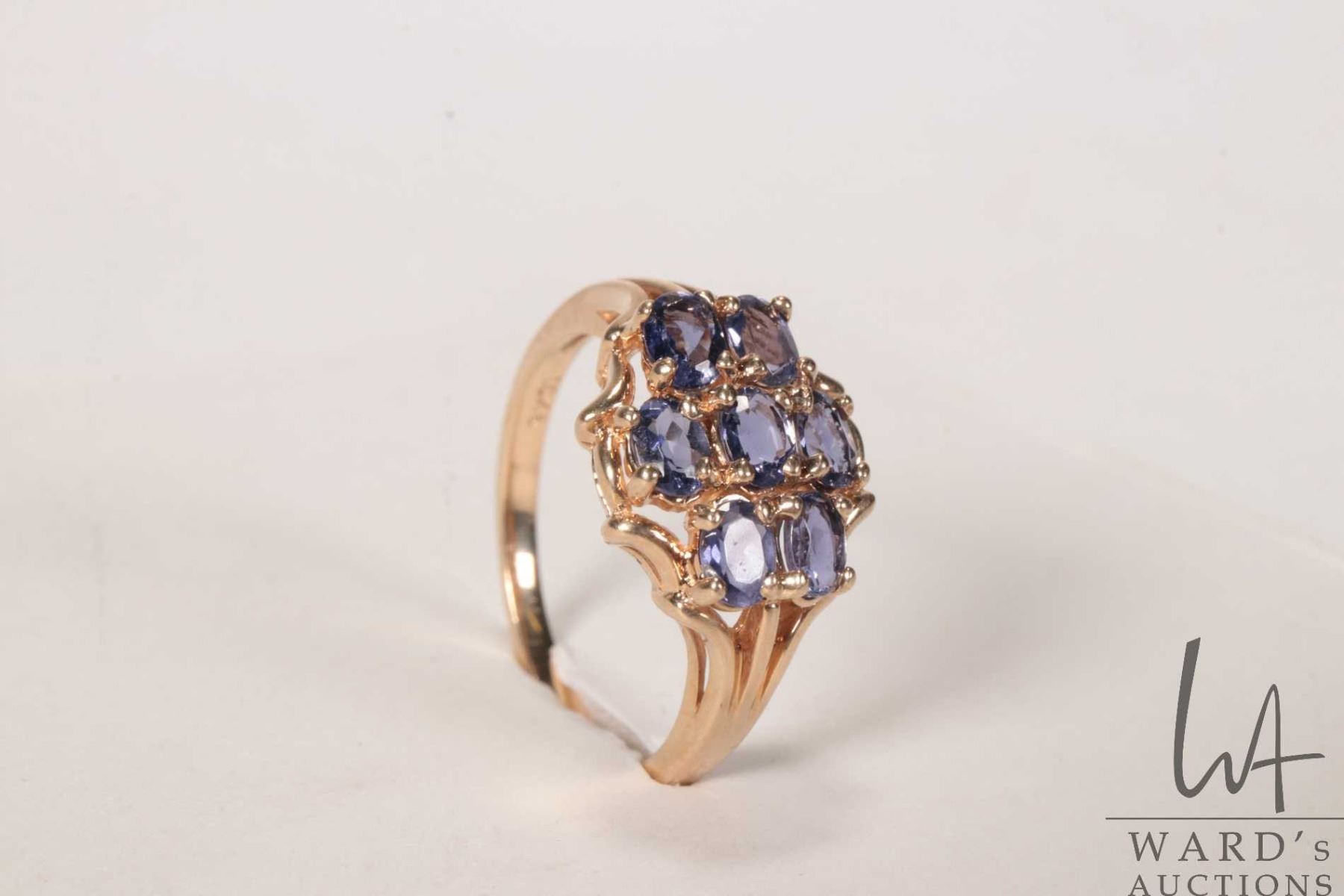 10kt yellow gold ring set with Tanzanite gemstone, size 7