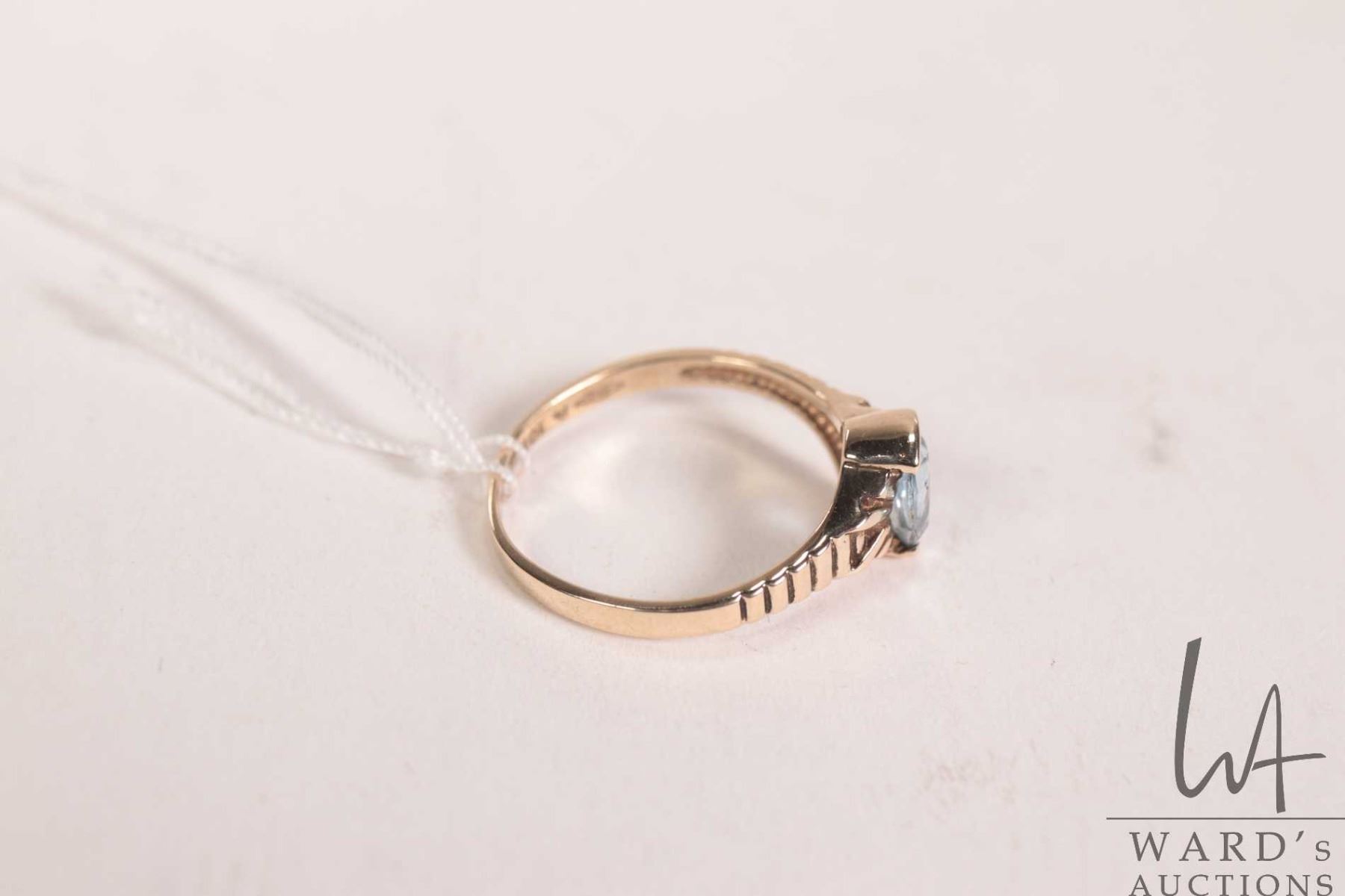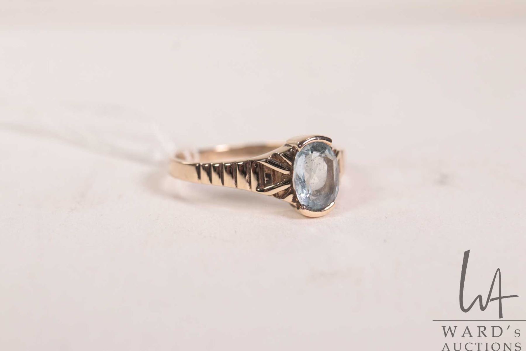 10kt yellow gold ring set with oval aquamarine gemstone, 1.9 grams, size 6