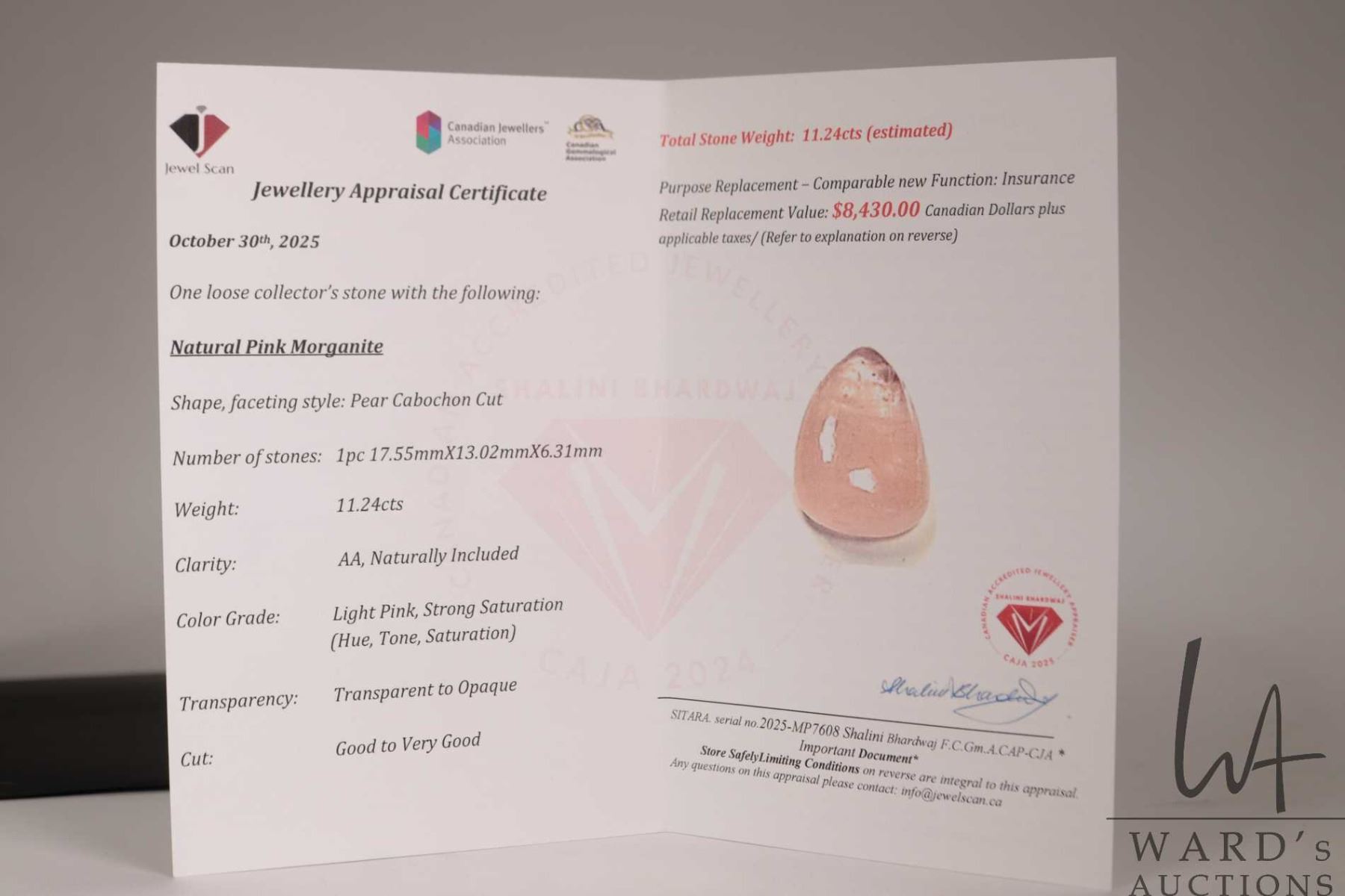 11.24 ct pink Morganite pear cabochon cut gemstone with certificate provided by consignor