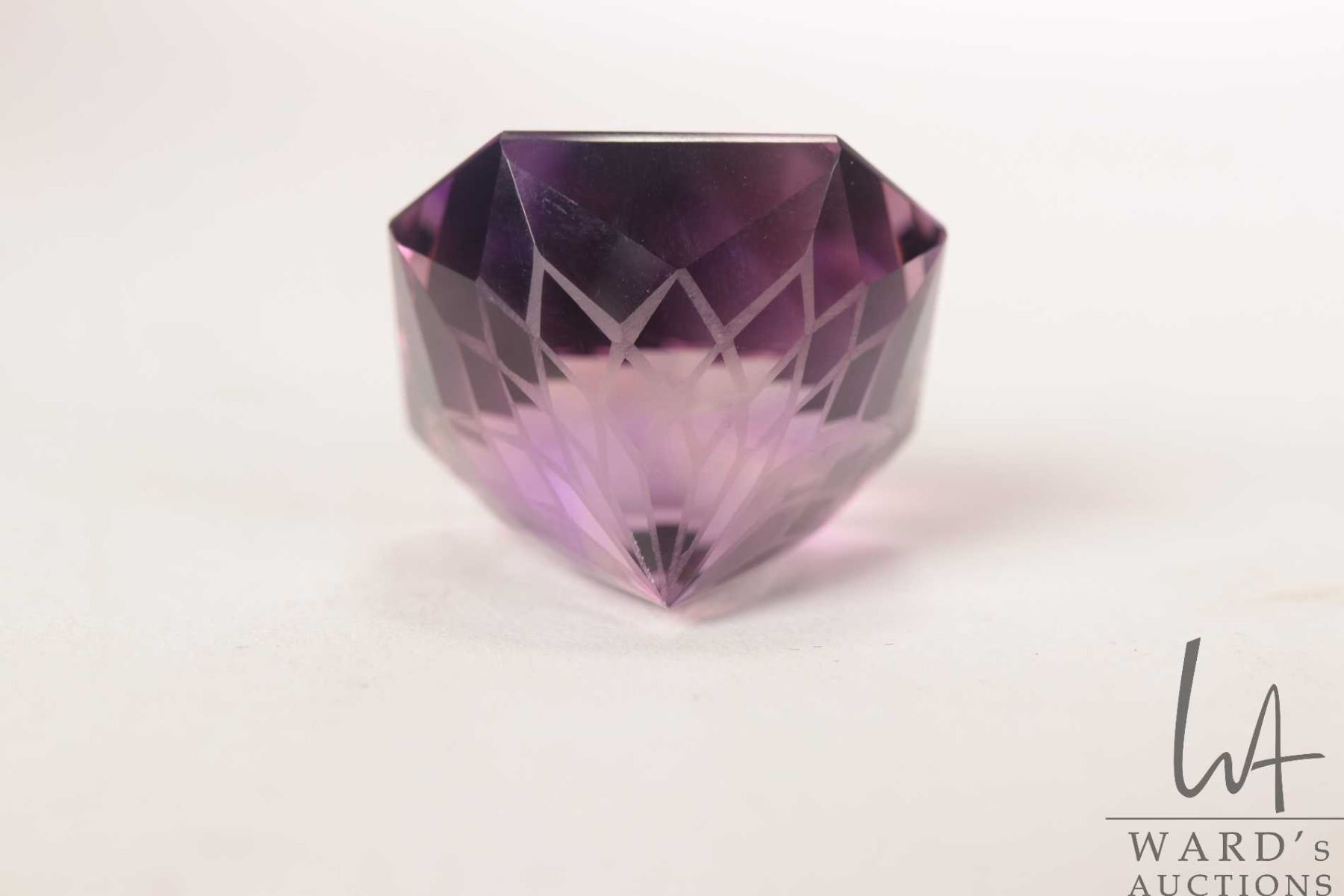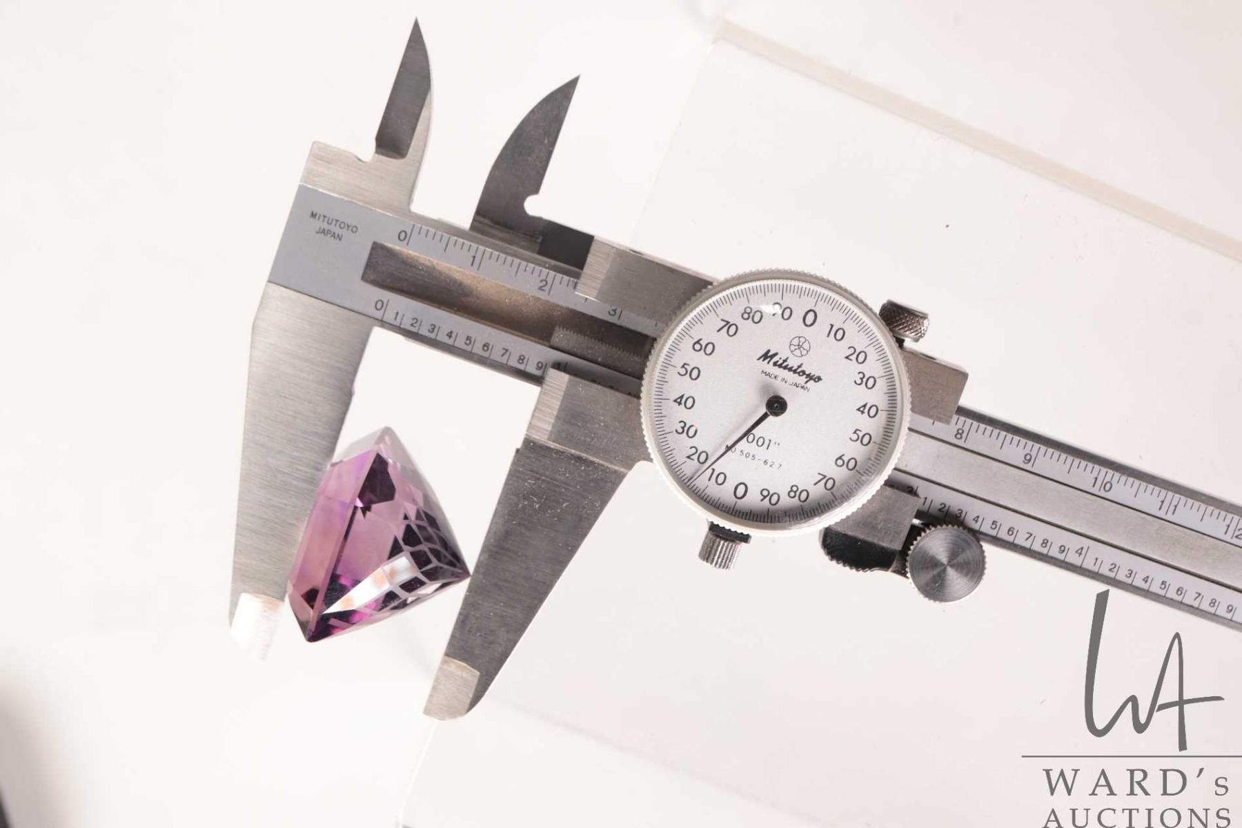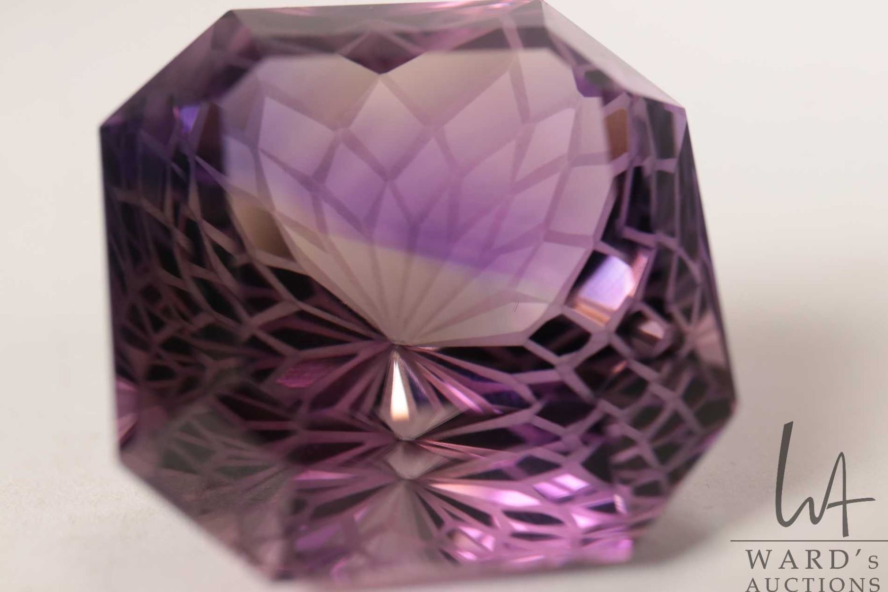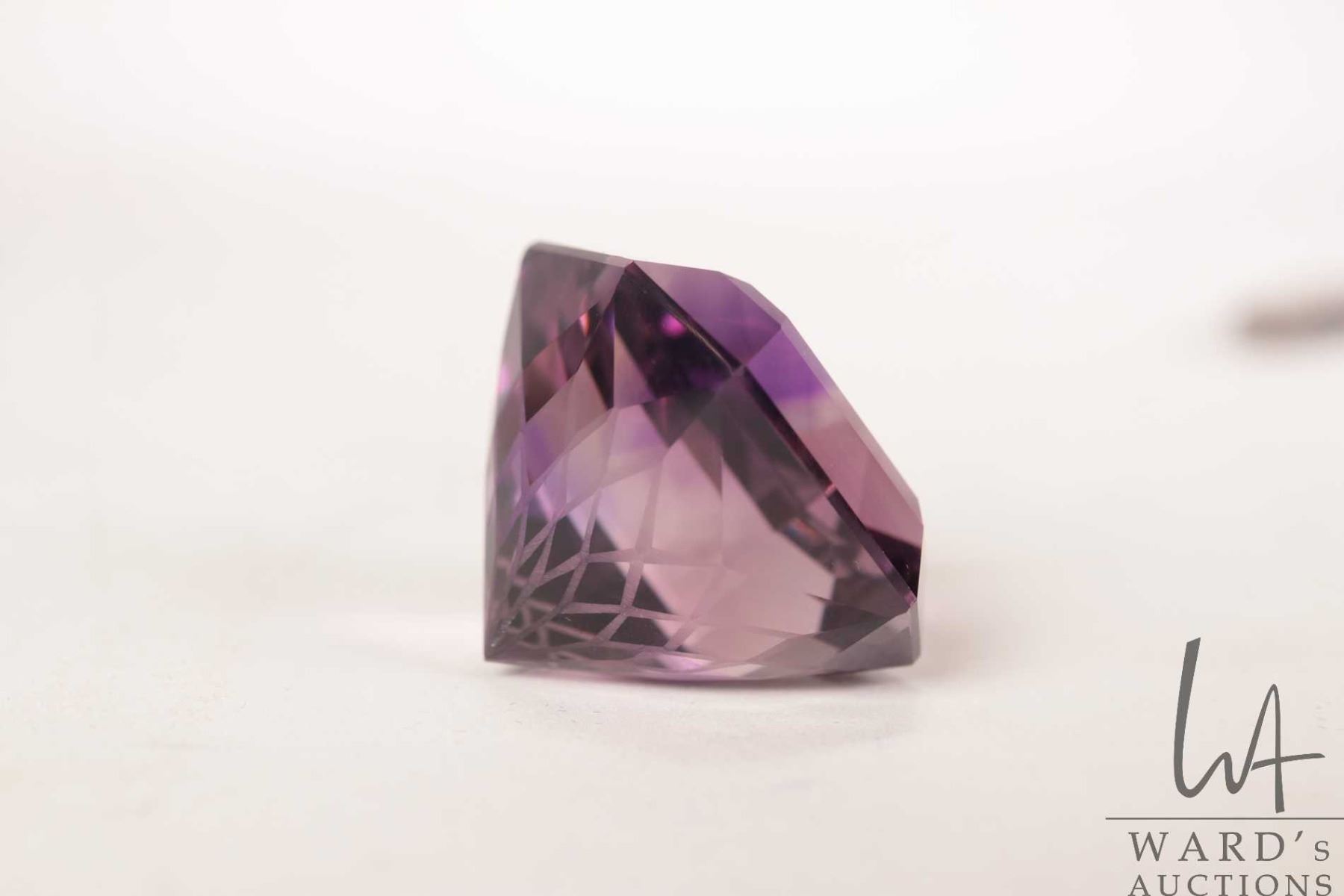 111.02 ct. custom flower design cut amethyst gemstone with certificate provided by consignor