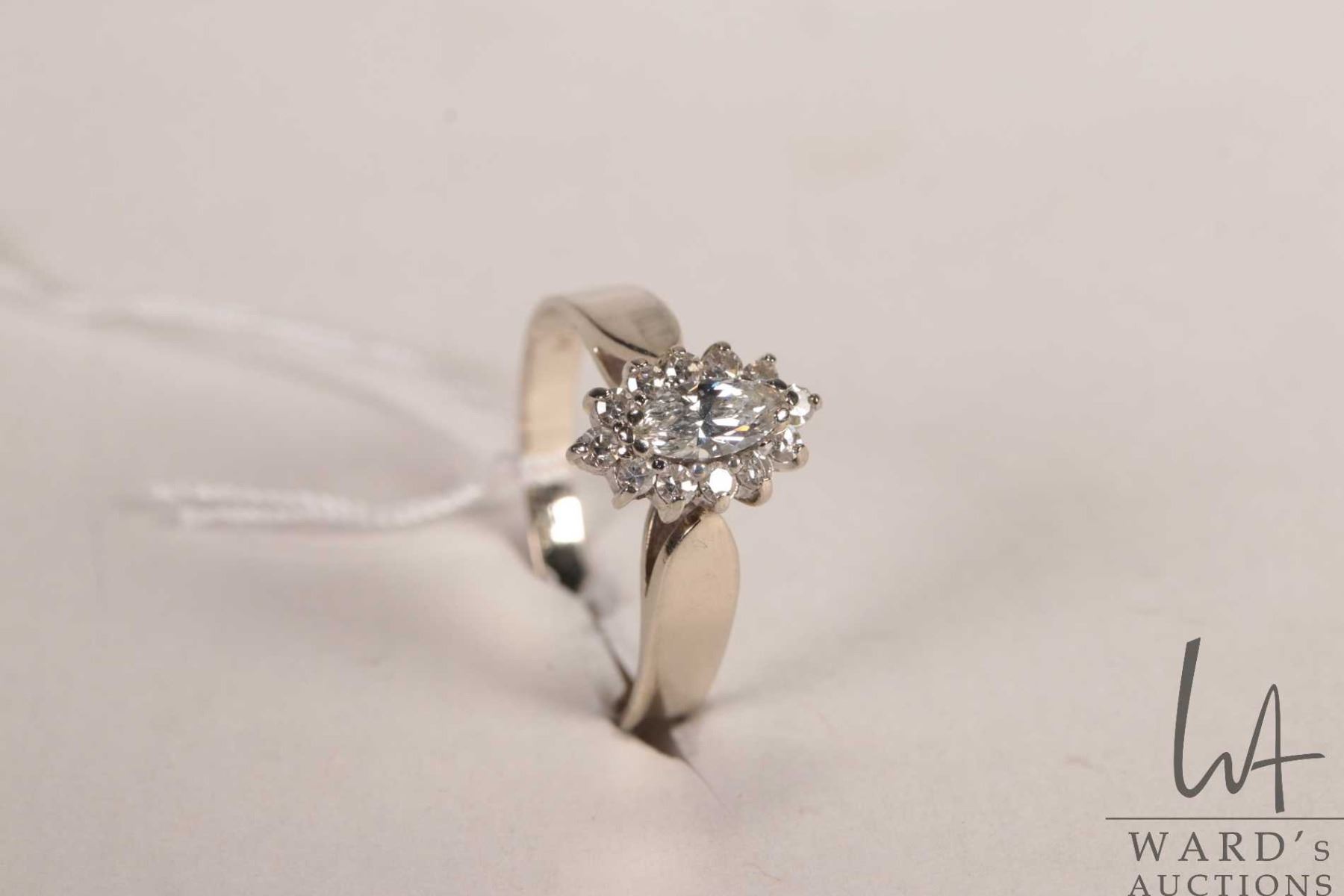 14kt white gold and diamond cluster gemstone ring, size 8.5
