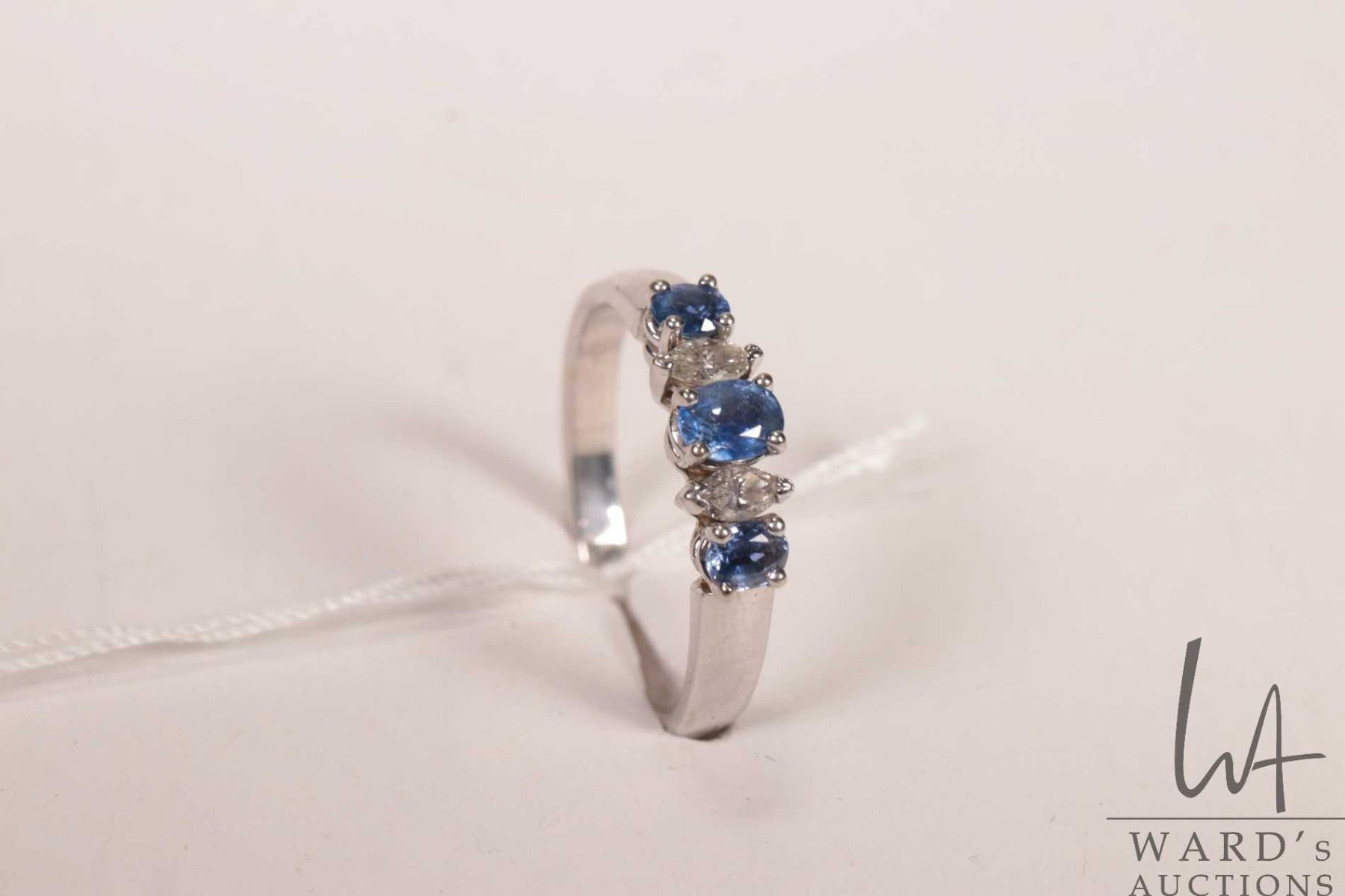 14kt white gold and electronically tested blue tanzanite and diamond gemstone ring, size 9.75
