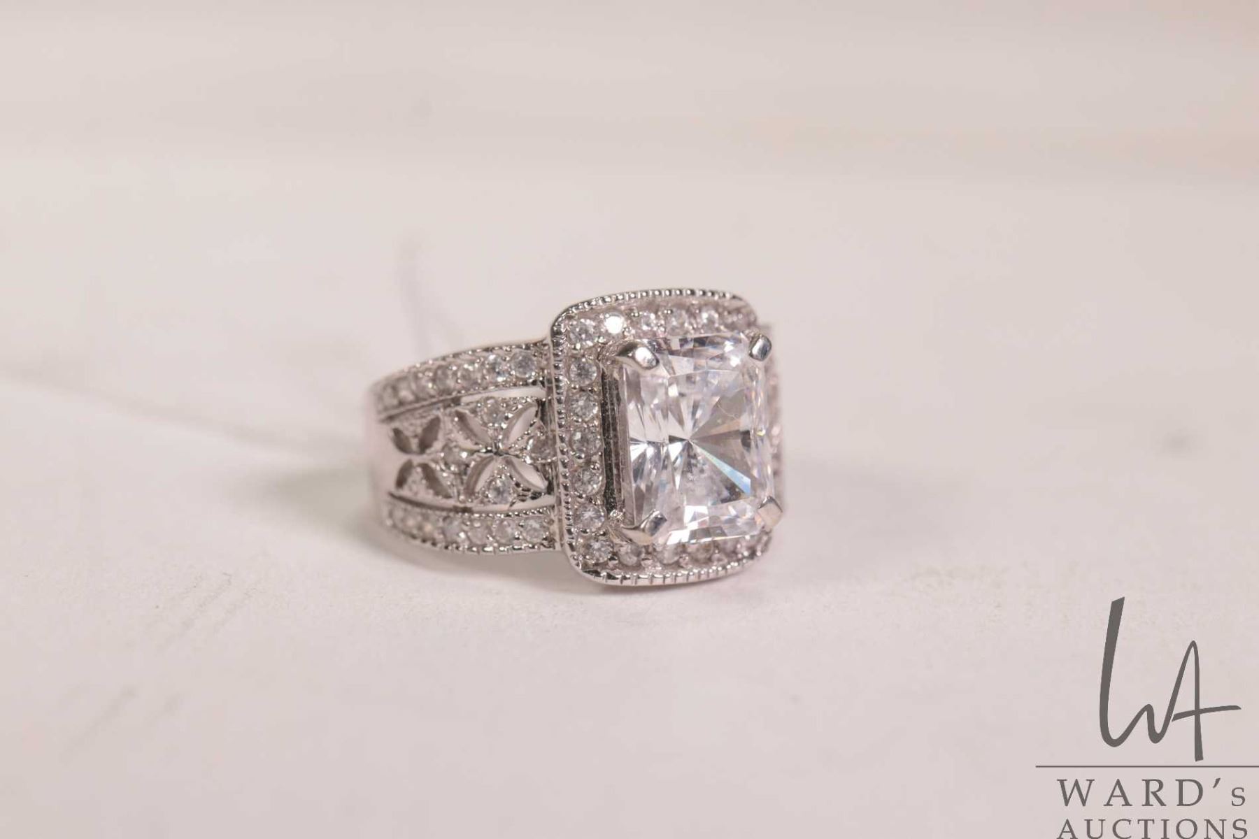 14kt white gold ring set with cubic zirconia 5.7 grams, size 6.75