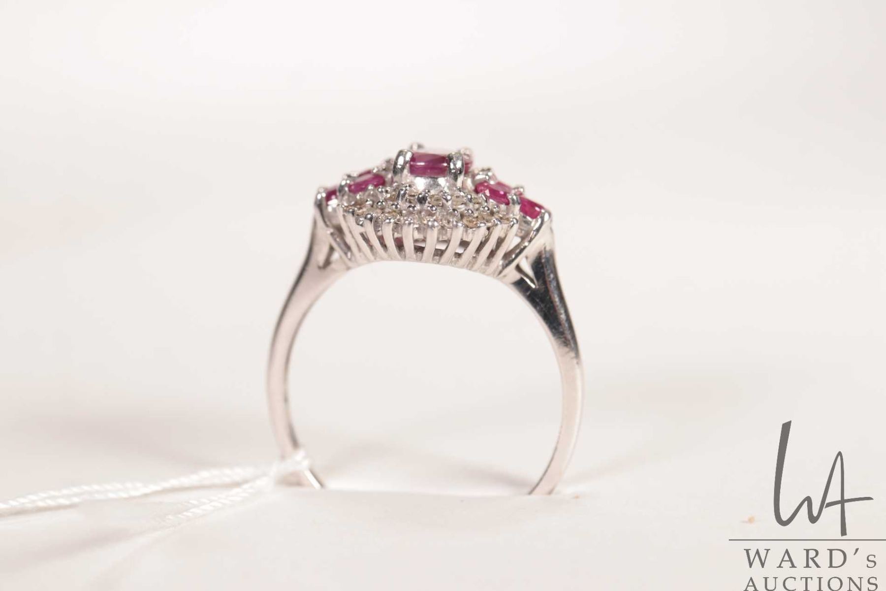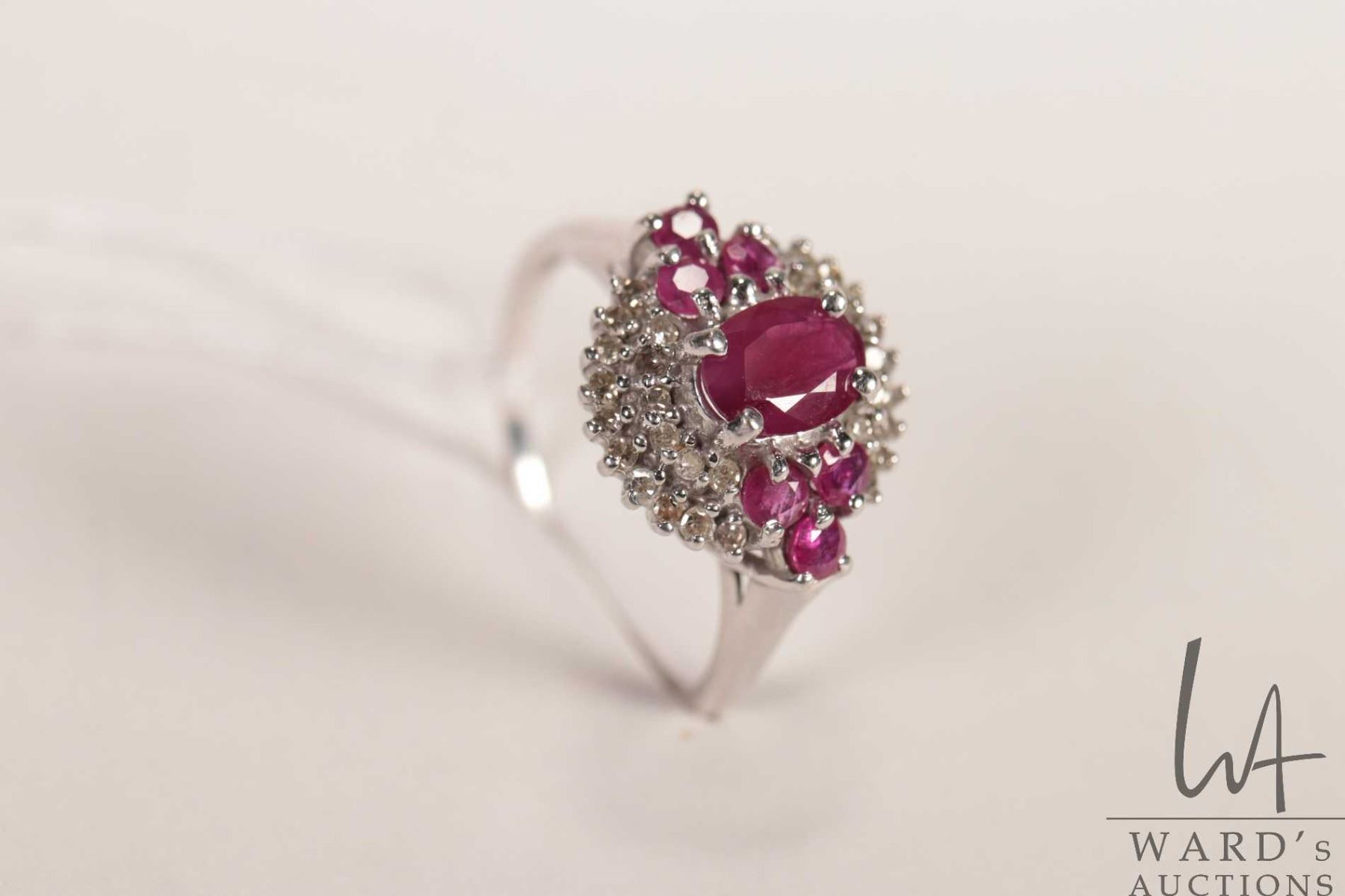 14kt white gold, ruby and diamonds gemstone ring, size 9.75