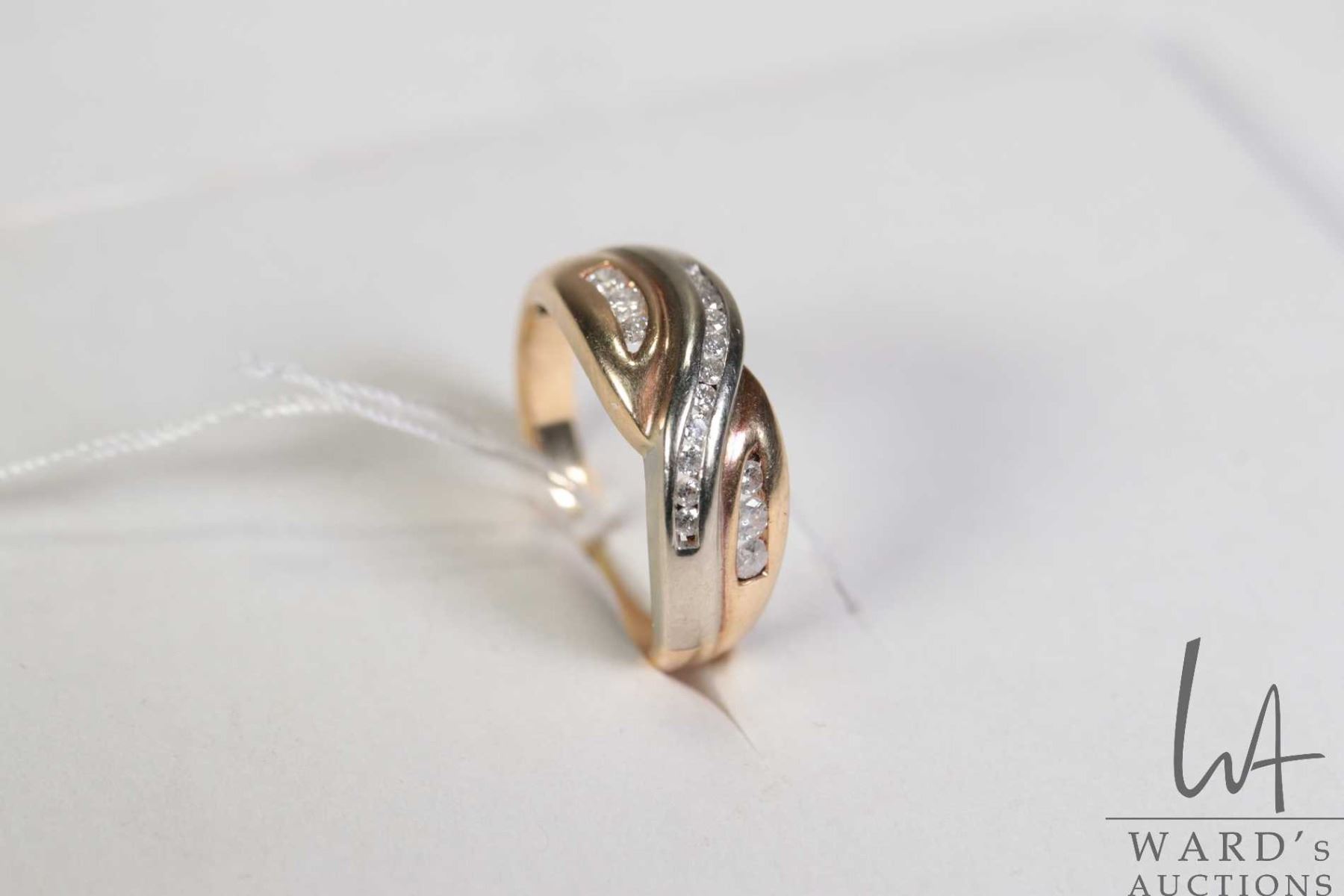 14kt yellow and white gold channel set diamond ring, size 8