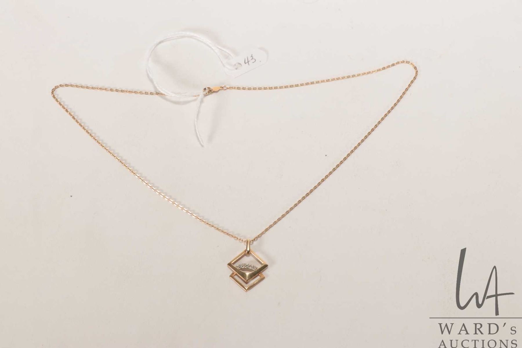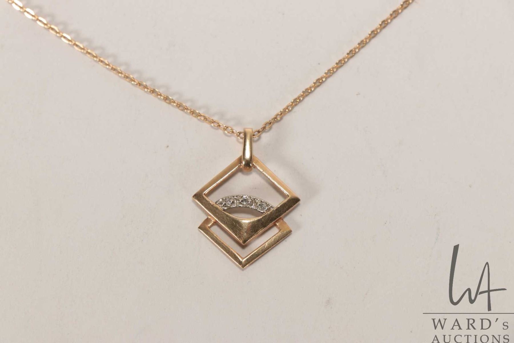 14kt yellow gold 16" neck chain with 14kt yellow and white gold pendant set with three small diamonds