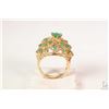 14kt yellow gold and emerald gemstone ring set with .45ct round mixed cut emerald gemstone and .80ct of accent emerald gemstones. Size 8 1/2. Retail replacement value $2,700.00