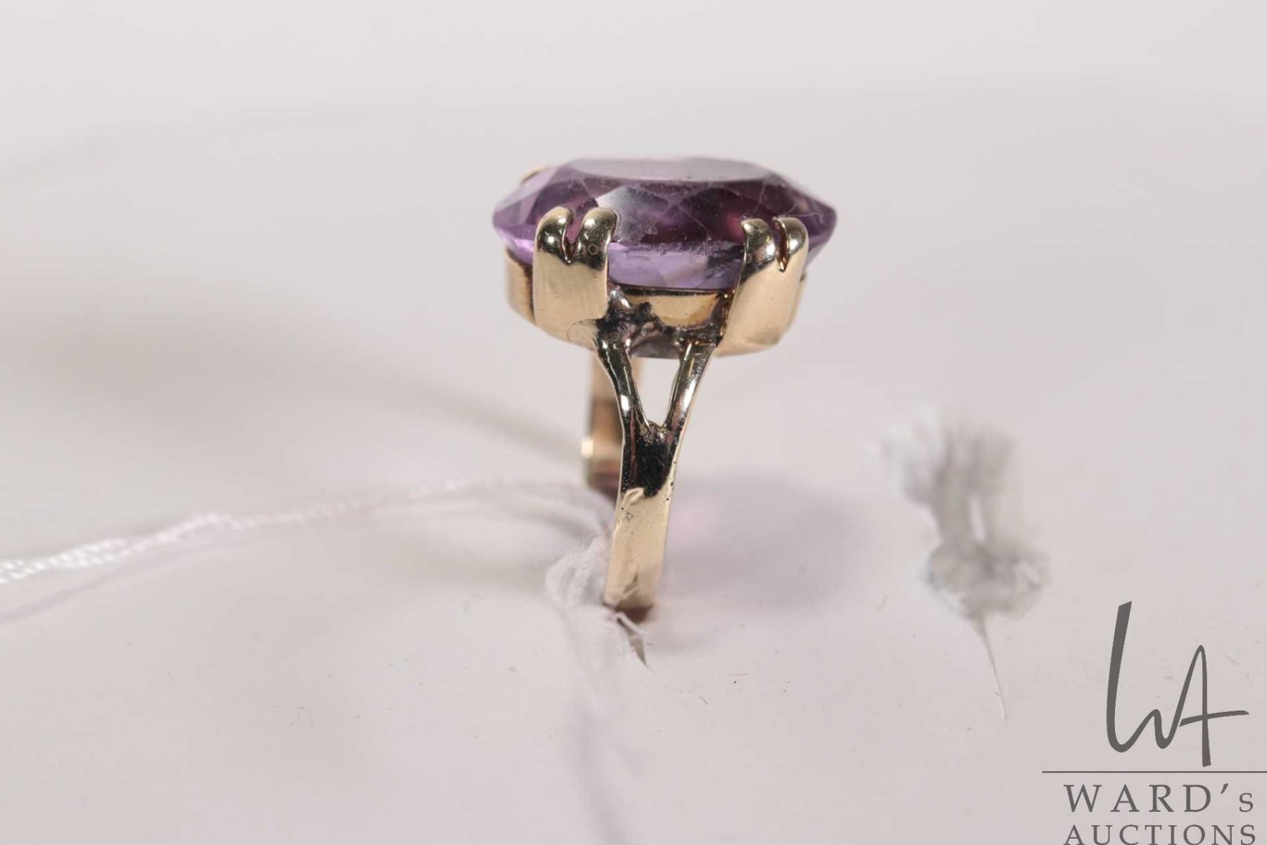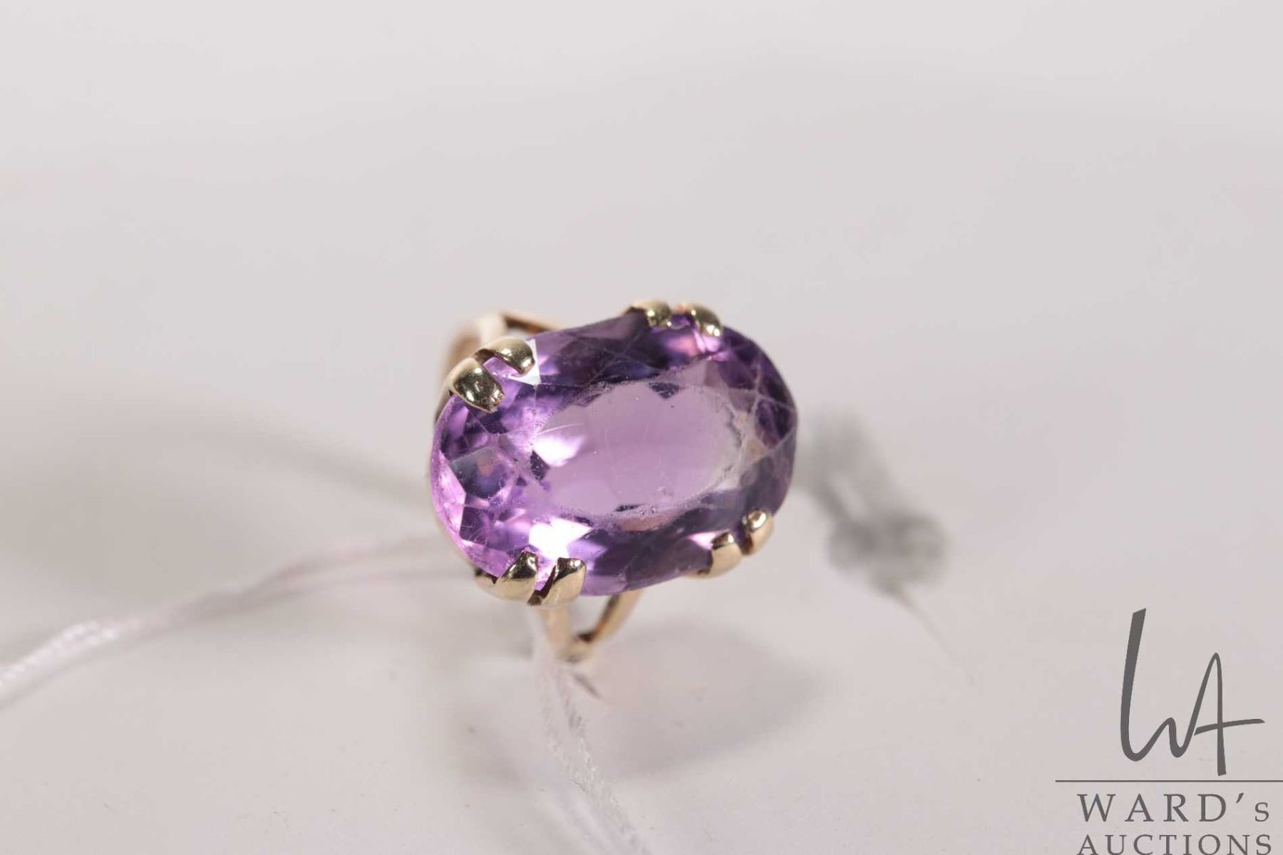 14kt yellow gold and oval cut faceted amethyst gemstone ring, size 2.5