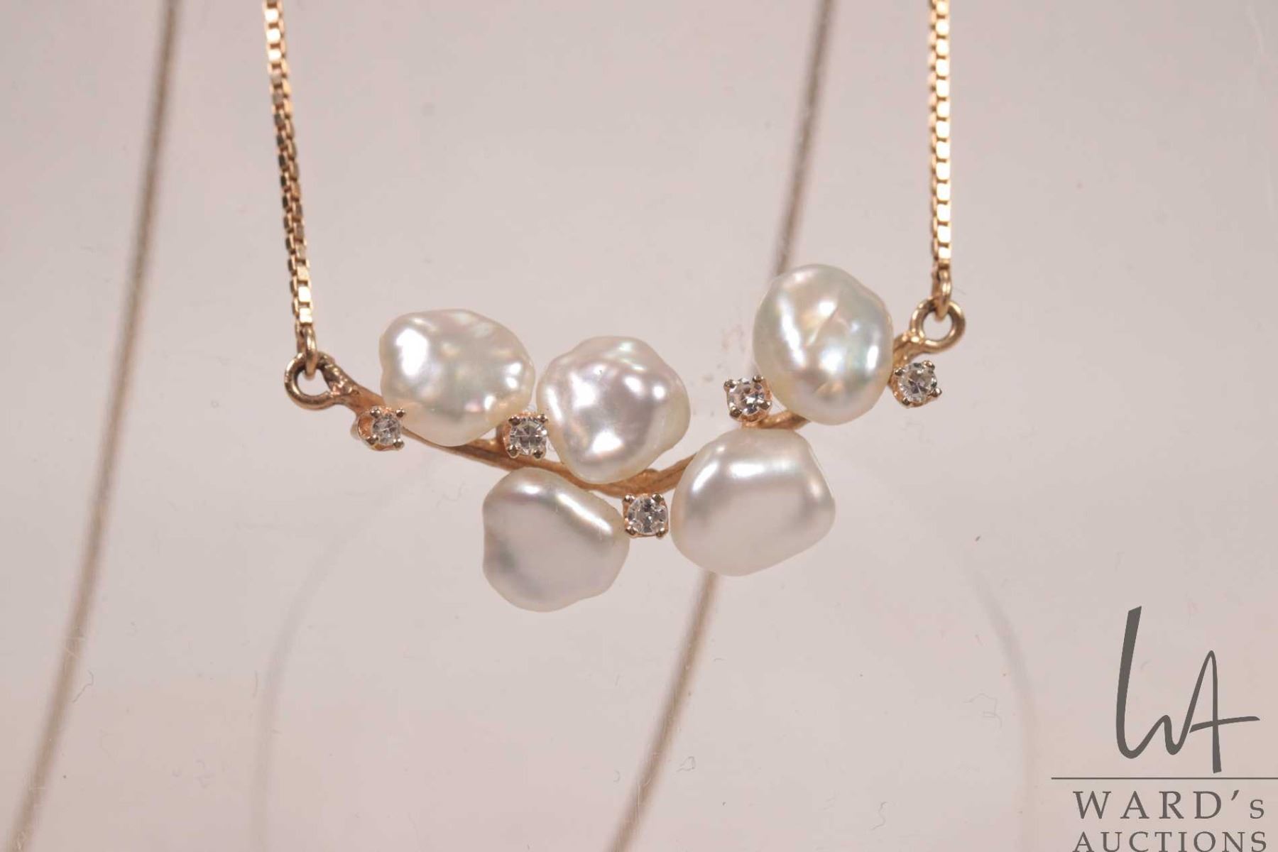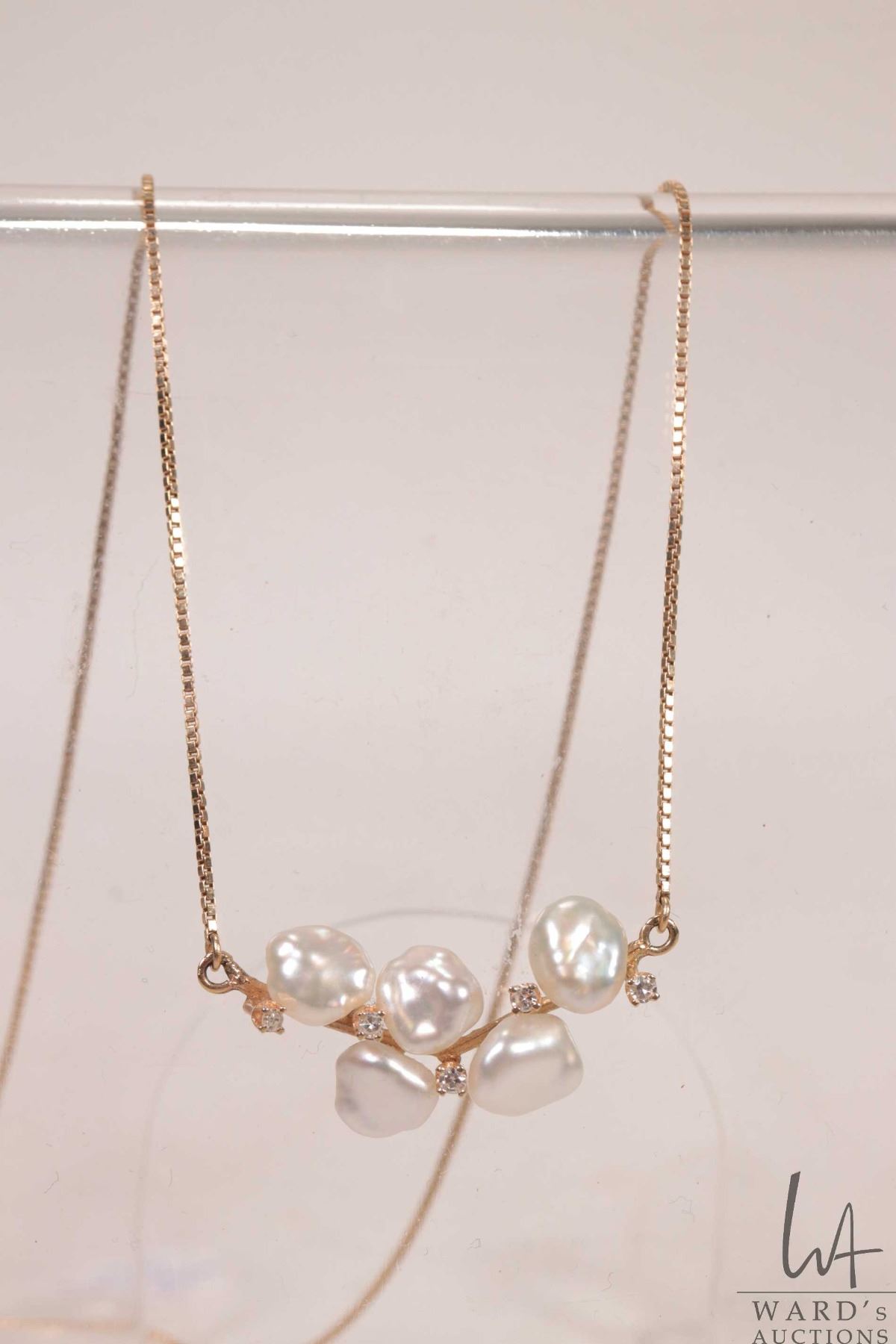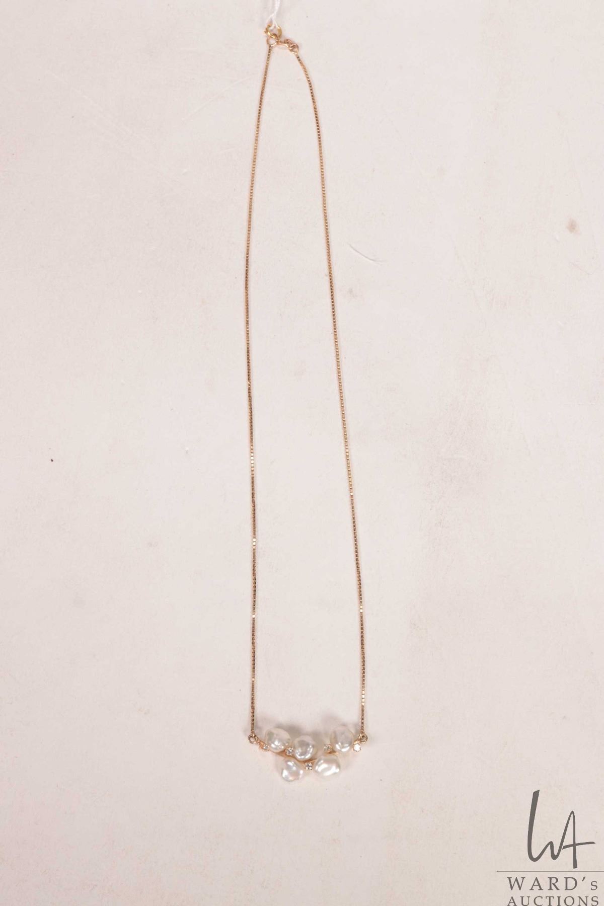 14kt yellow gold, genuine pearl and diamond ring, 16" in length