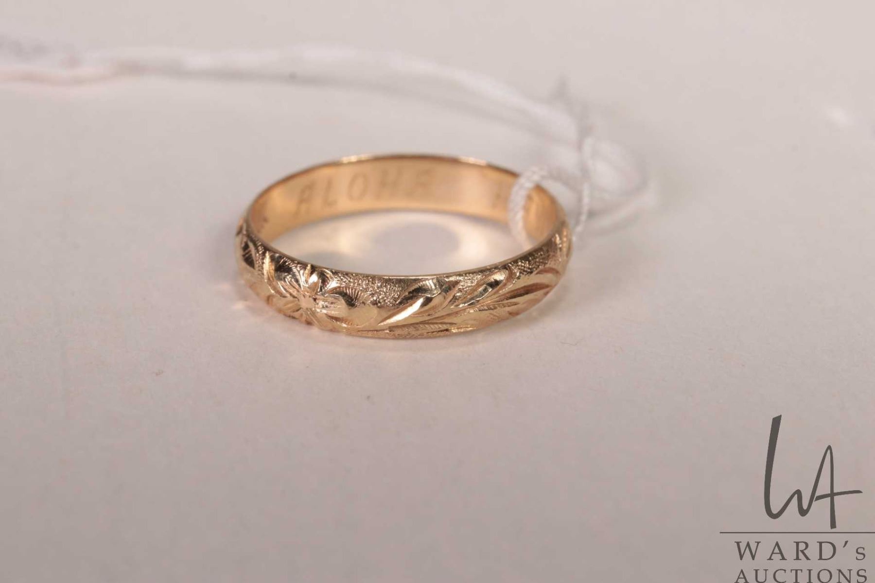 14kt yellow gold ring with engraved and enameled with Hawaiian name, size 6.25