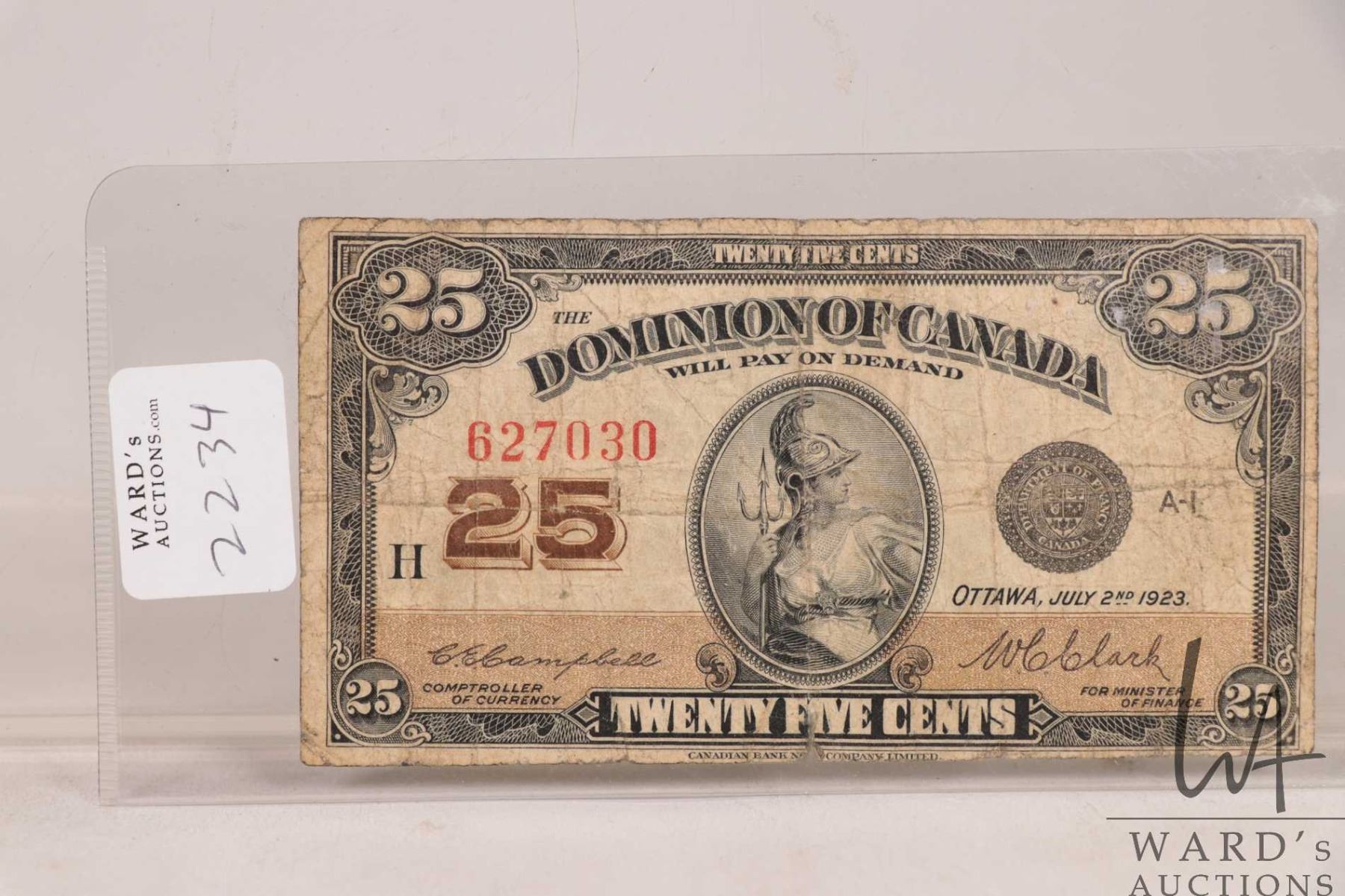 1920 Dominion of Canada 25 cent shinplaster