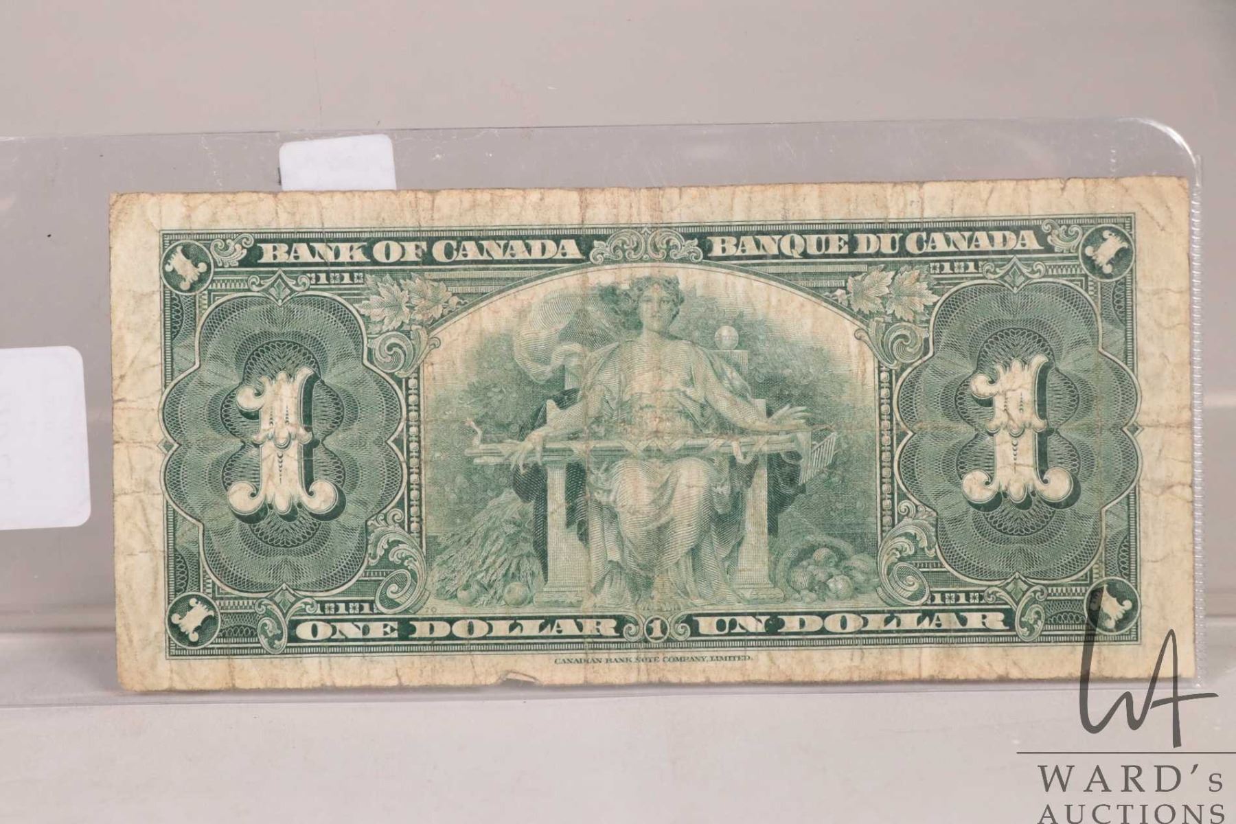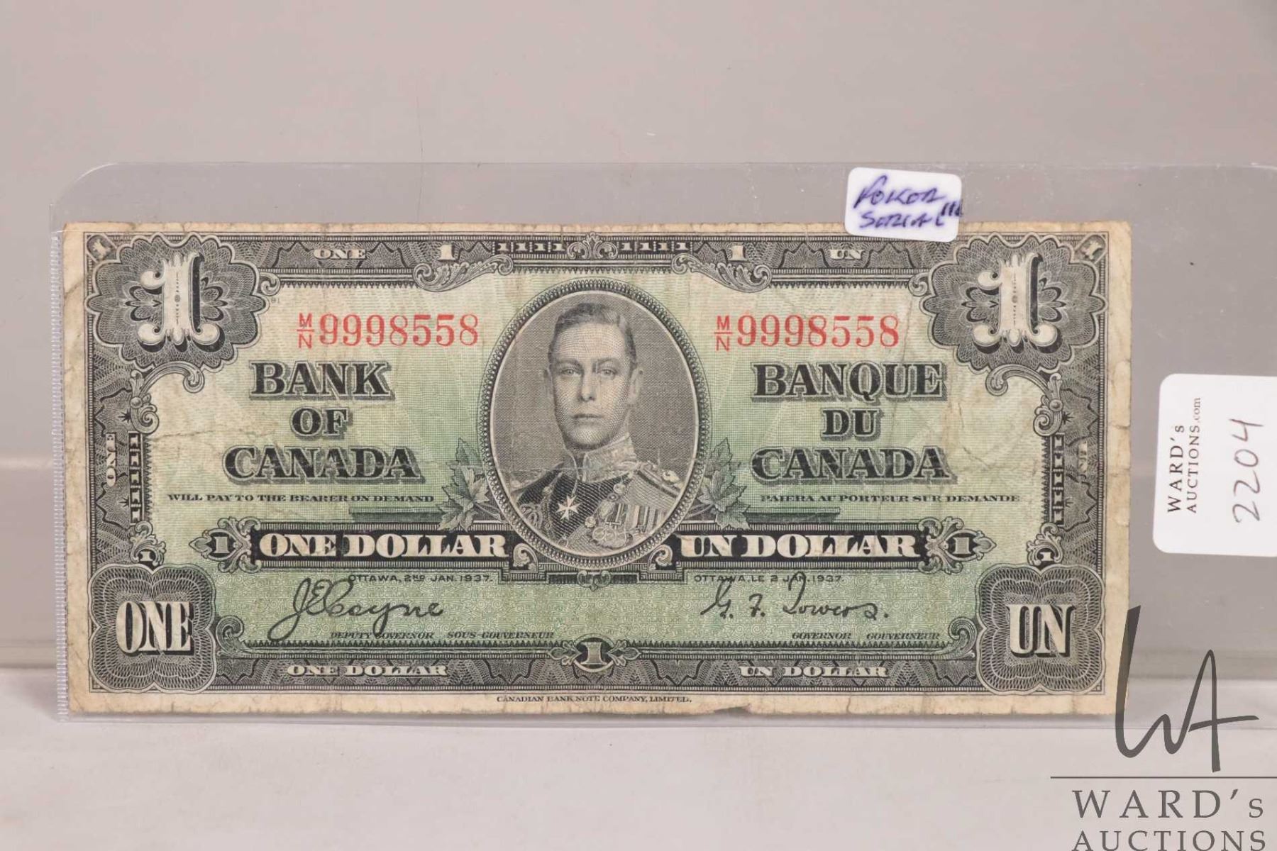 1937 Bank of Canadian one dollar bill with good poker hand serial number