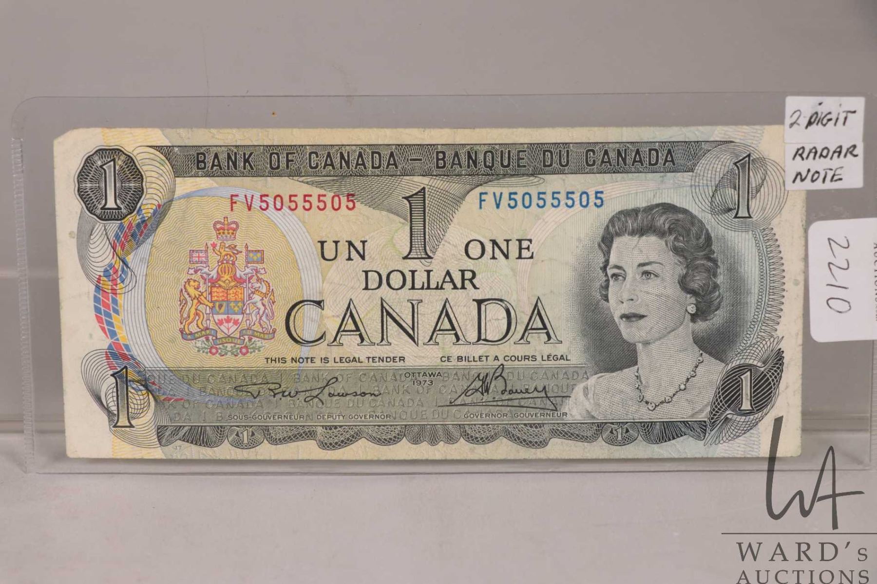 1973 Canadian $1 bill with two digit radar serial number
