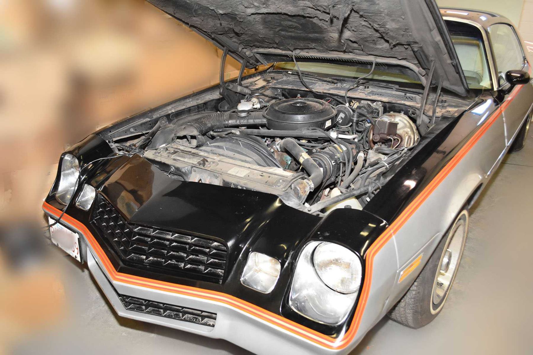 1979 Camaro Rally Sport 350 4 barrel w/ Tilt, cruise ,automatic transmission, A/C, power steering, power windows, power locks, AM/FM 8 track, front tires appear new, back tires around 70%, Spare tire, body has little to no damage, glass has no large cracks but has small chips, inside head liner falling out and needs work inside, 79,414 KM, Ser# 1Q87L9L561220