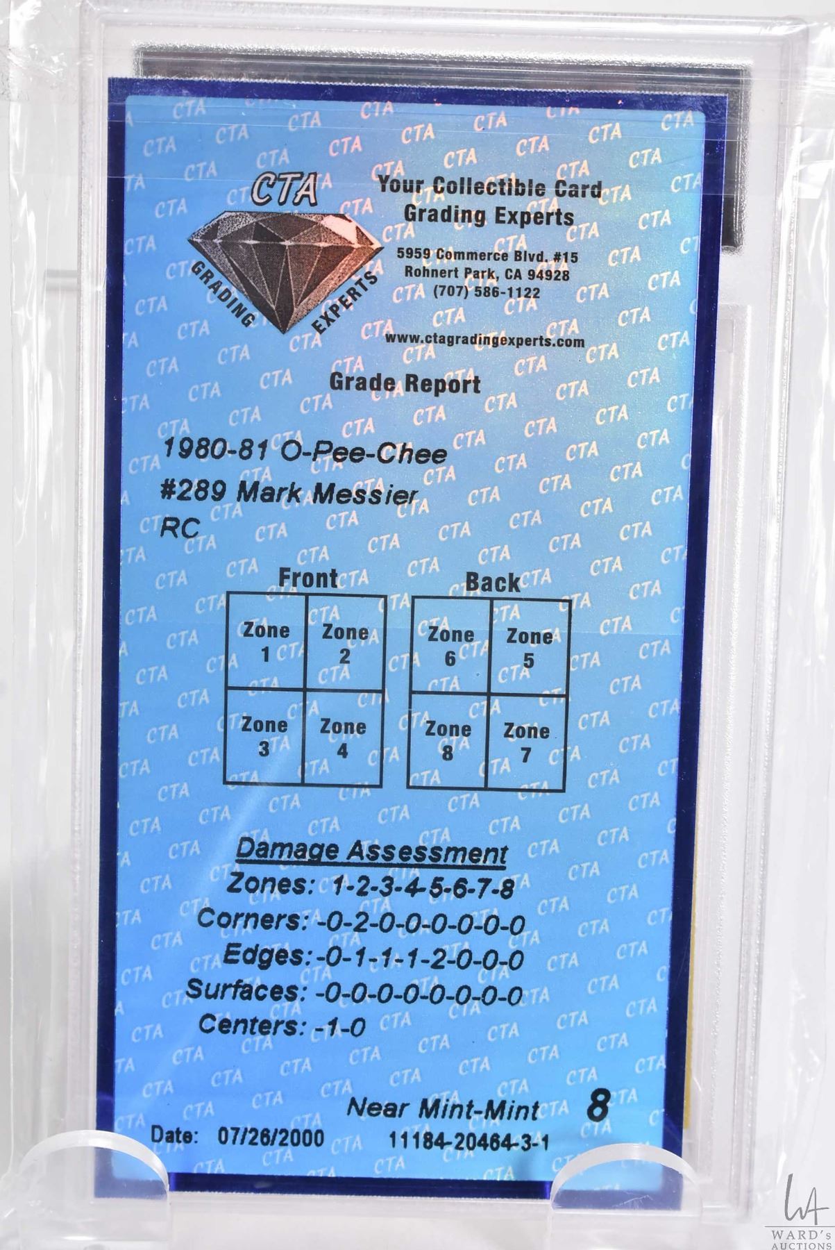 1980-1981 O-Pee-Chee Mark Messier #289 RC CTA graded NM-MT 9 hockey card serial no. 11184031, UPDATE: This card has been reviewed by a reputable dealer and we are 100% confident in it's legitimacy. CTA is no longer in business so we can't speak to grading. This is a final sale so bid accordingly