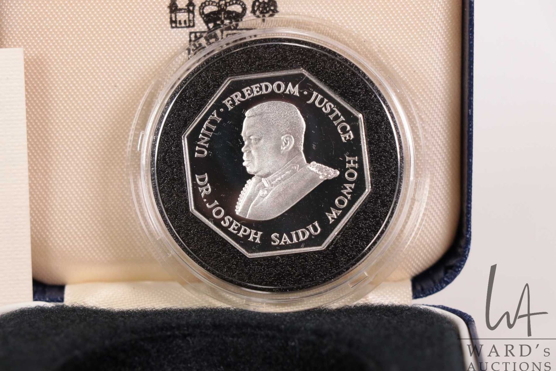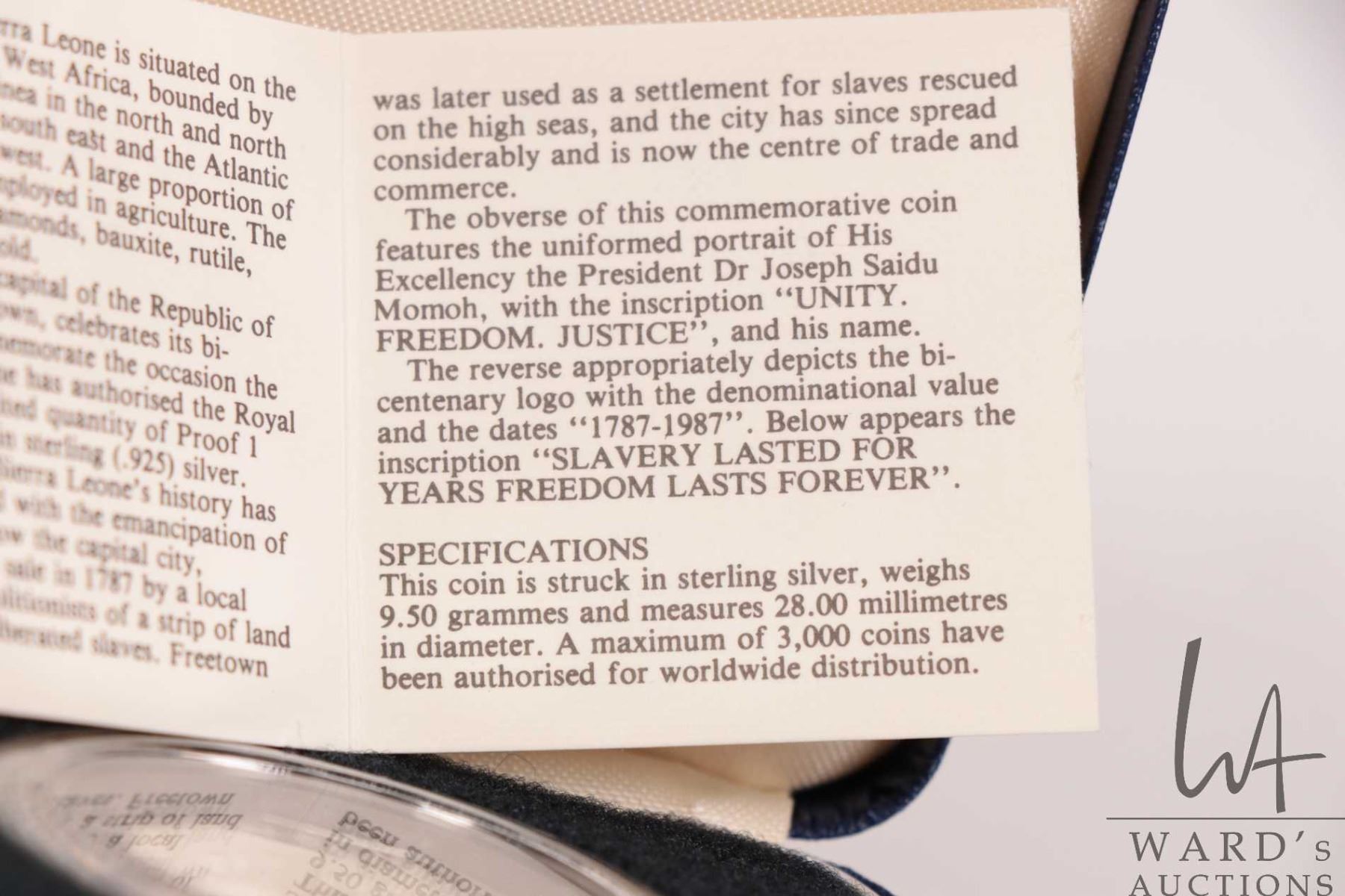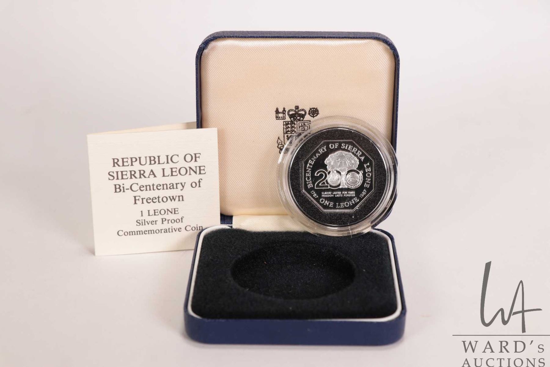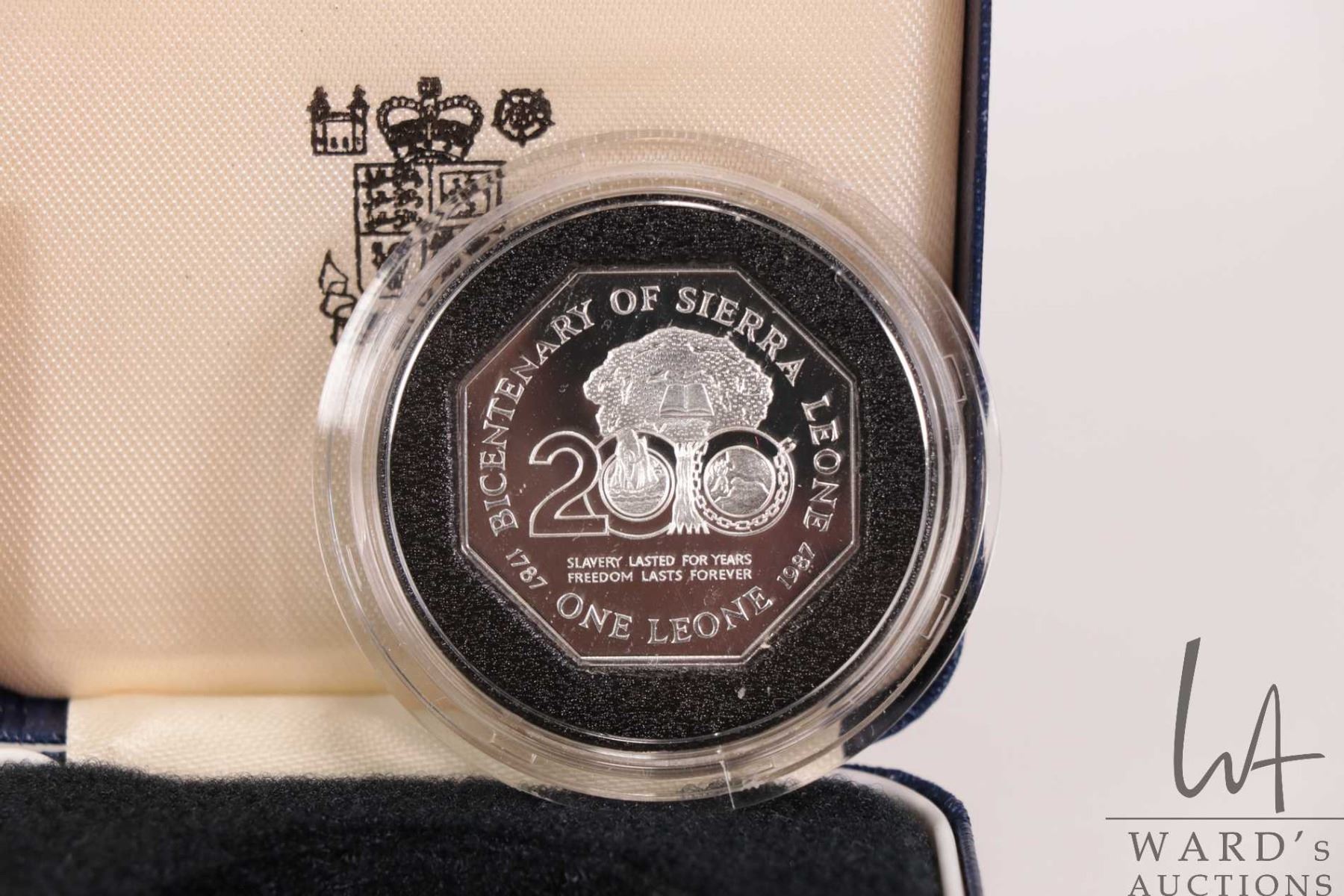 1987 Royal Mint Republic of Sierra Leone bi-centennial commemorative 1 Leone .925 silver coin with presentation box and certificate