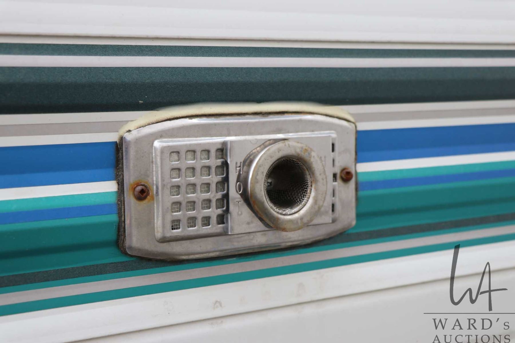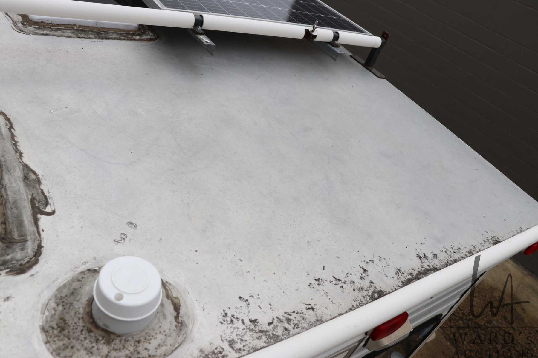 1999 Slumber Queen 80W Adventurer EXT Camper. 8' base with 6'-9" overhang, overall length of 14'-9". Fits a queen size bed, gas Hydroflame FA8012DF furnace, gas Suburban SW6P water heater, gas Wedgewood C37A range, gas/12v/11gv Dometic Rm23103 refrigerator. After Market Eco worthy solar panels. Bathroom has no shower and none outside, upholstered couch, two 20lb propane tanks, one outside panel is missing a door cover. Manufactered in July 1999, serial number# 8544-99. Plus accessories including folding access stairs, new in box diesel powered heater, assorted camper to truck fitment accessories, portable sewage tank etc.