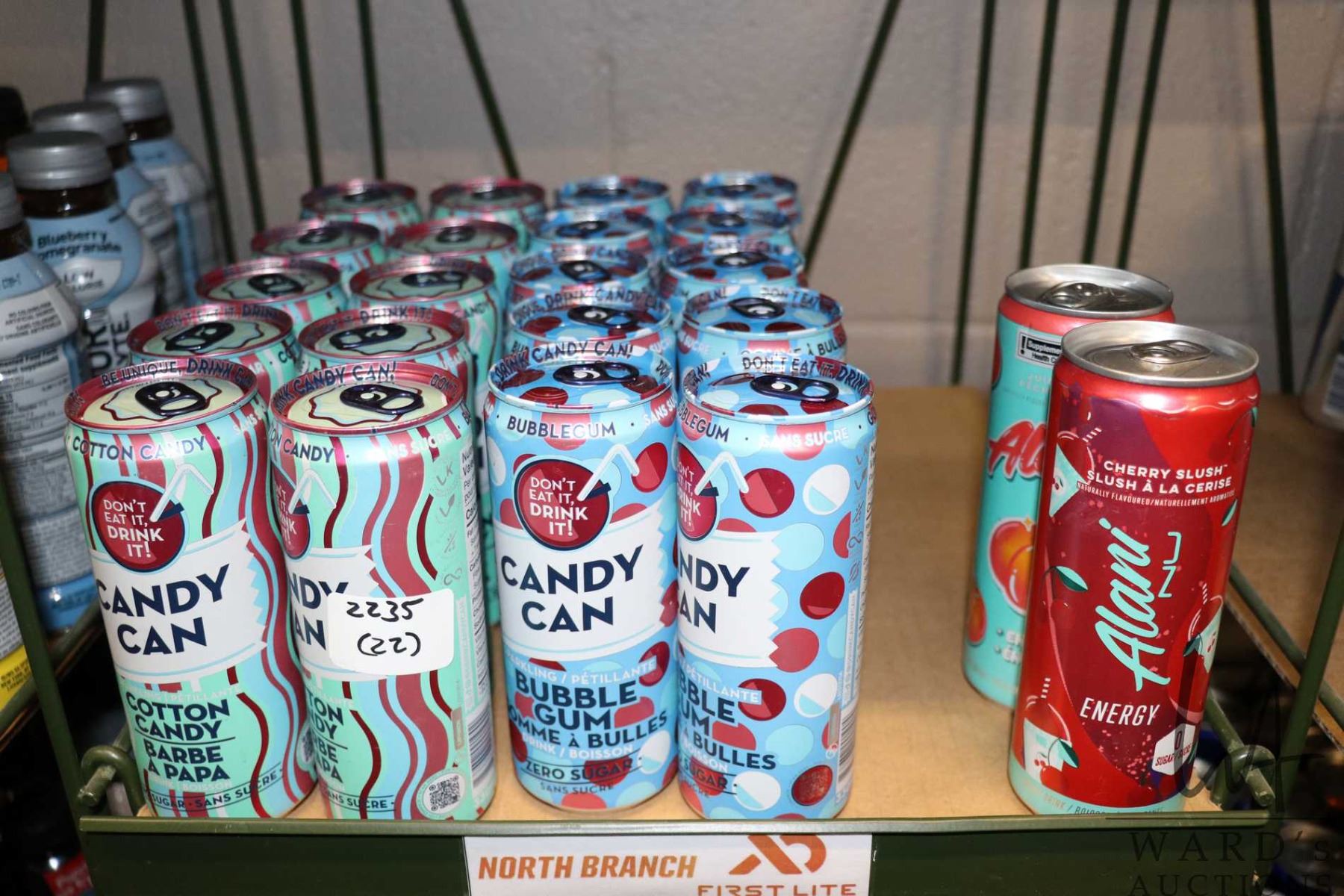 22 assorted beverages including 10 330ml cans of Candy Can Cotton Candy, 10 330ml cans of Candy Can bubble gum and 2 355ml Alani Nu energy drinks (1 cherry slush and 1 juicy peach)