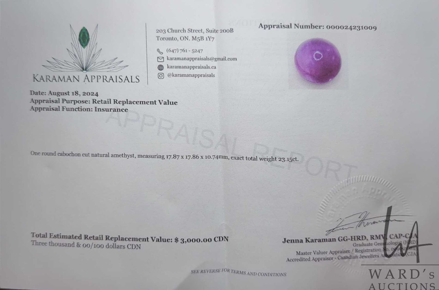 23.15ct Certified Amethyst gemstone with certificate provided by consignor
