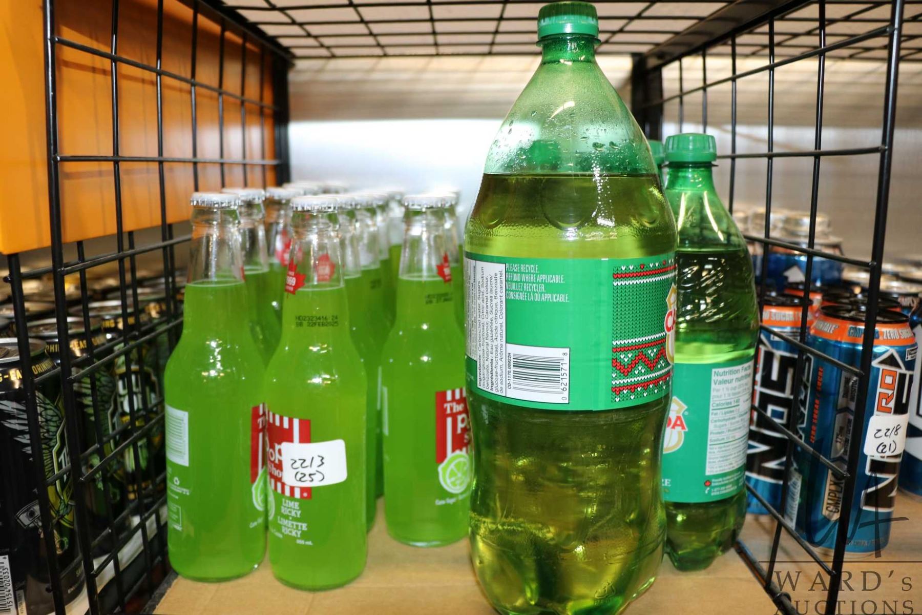 25 assorted bottles of pop including 17 355ml bottles of Pop Shop lime ricky, three 1 L bottles of Sprite. four 1 L bottles of Canada Dry Gingerale and one 2 L bottle of Canada Dry Gingerale