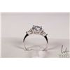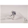 2ct lab created sapphire trinity ring white pear side stones, mounted in sterling silver with white gold overlay, size 7.5