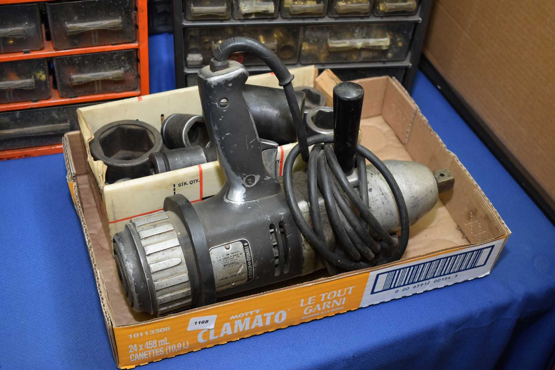 3/4" drive electric impact wrench made by Black & Decker and 3/4" drive sockets