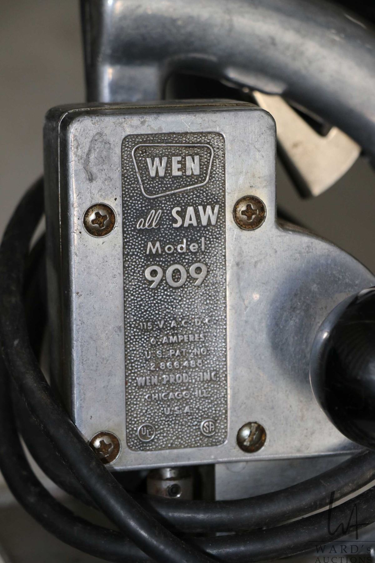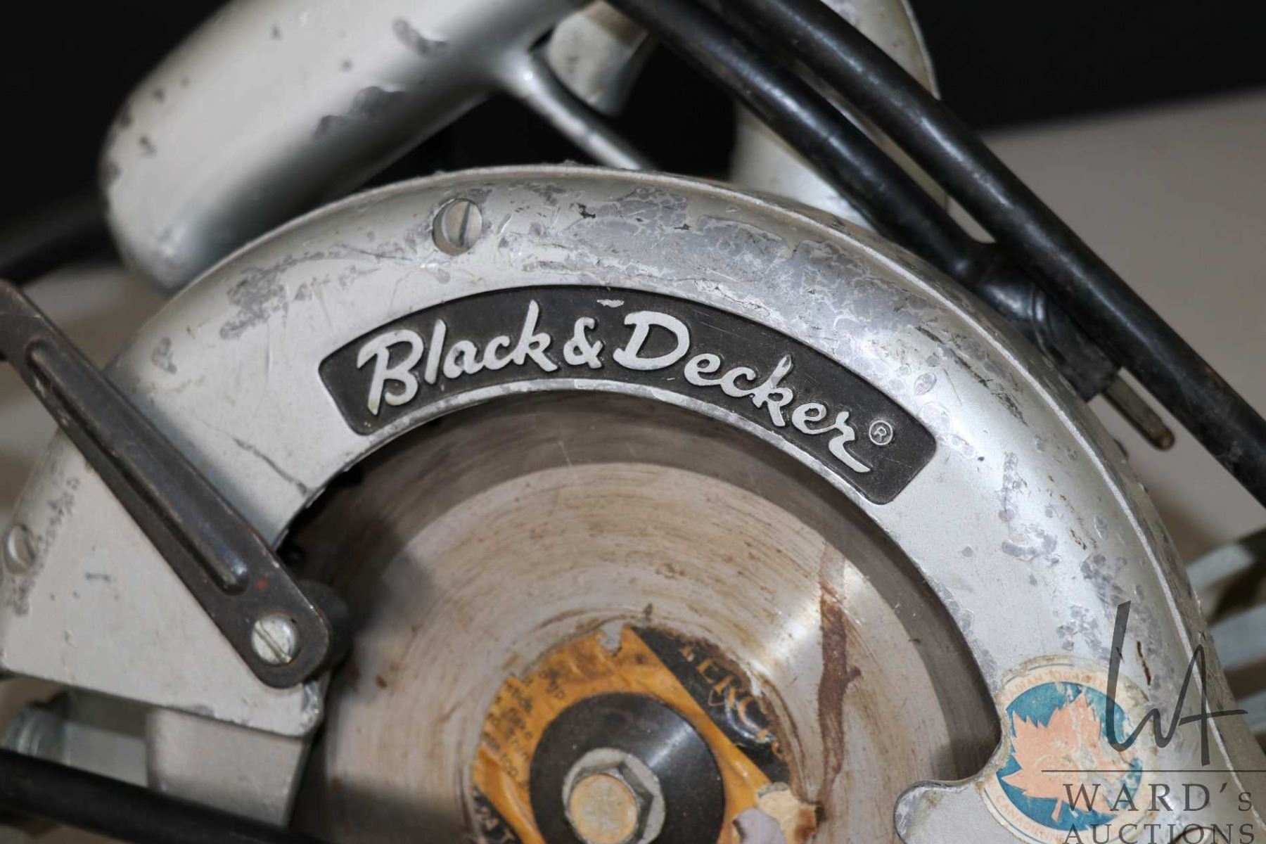 3 vintage silver power tools including a Black and Decker circular saw, a WEN Model 909 All Saw, and