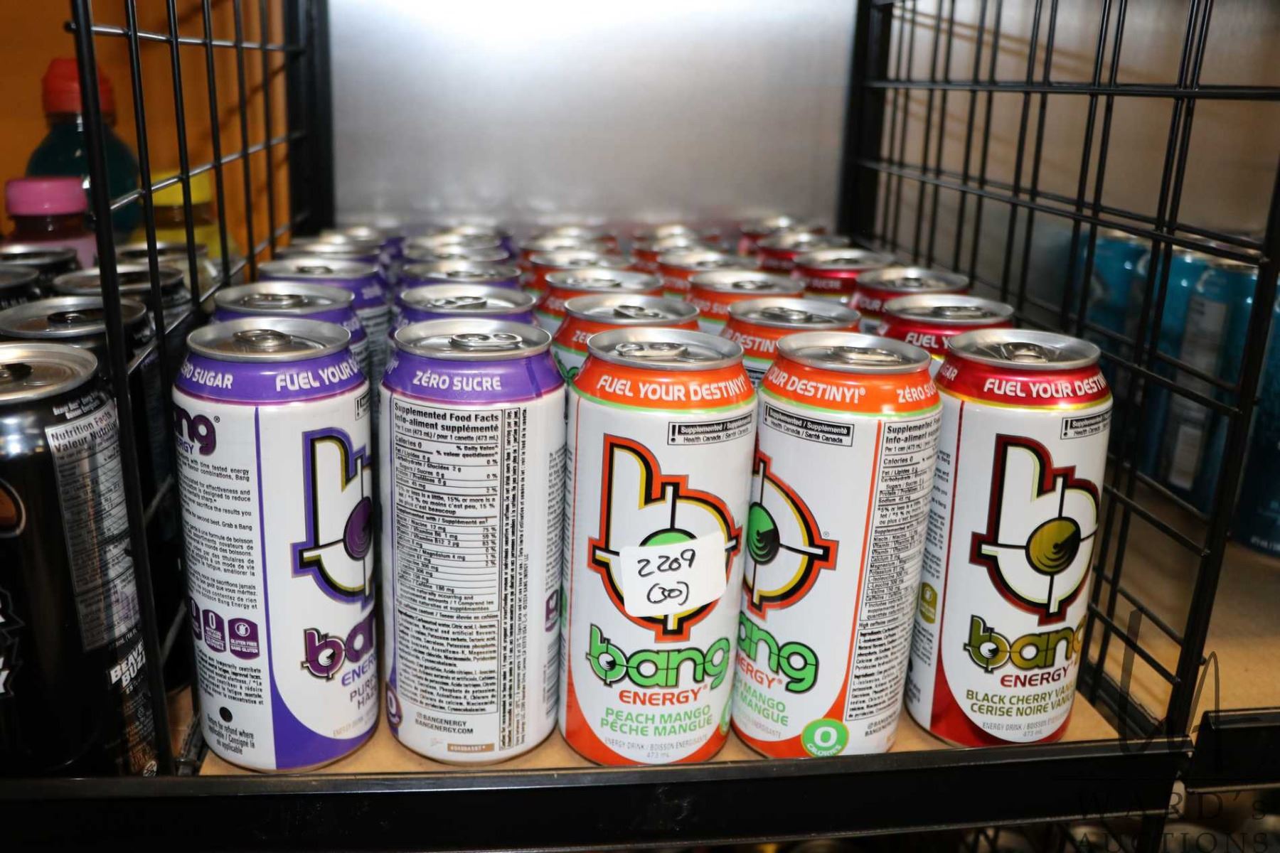 30 473ml cans of Bang Energy in assorted flavors including Blackcherry vanilla, peach mango and purple haze